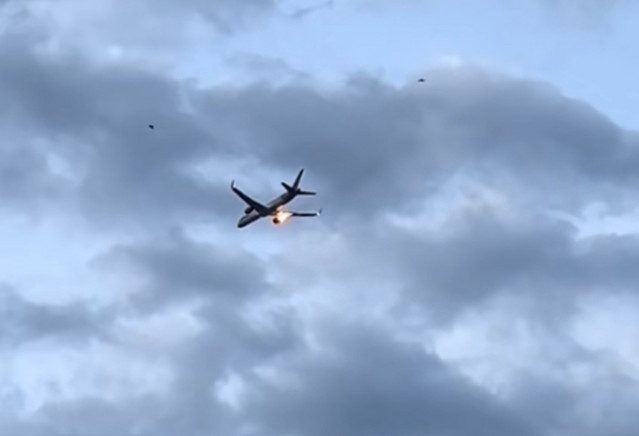 Στο οπτικό υλικό φαίνεται το Boeing 757 στη φάση ανόδου, με τις λάμψεις από τις εκρήξεις να γίνονται ορατές, ενώ ακούγεται και ο έντονος θόρυβος που προκάλεσαν. Στη συνέχεια το αεροπλάνο στρέφει δεξιά, την ώρα που καπνός βγαίνει από τον κινητήρα.