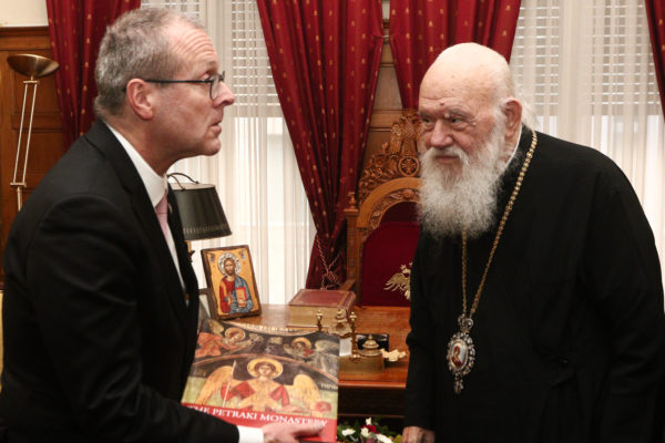 «Αν θέλουμε υγιή παιδιά, χρειαζόμαστε δασκάλους που να εμπνέουν, γονείς που να αγαπούν και να σέβονται ο ένας τον άλλον και ένα οικογενειακό περιβάλλον με αξίες» τόνισε ο Αρχιεπίσκοπος Αθηνών και πάσης Ελλάδος κ.κ. Ιερώνυμος κατά την συνάντηση που είχε το απόγευμα με τον Περιφερειακό Διευθυντή του Παγκόσμιου Οργανισμού Υγείας για την Ευρώπη, Δρ. Hans Henri P. Kluge.