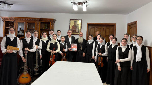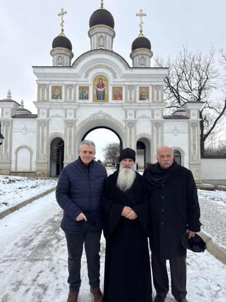 Νωρίτερα η αντιπροσωπεία της ΔΣΟ επισκέφθηκε την Γυναικεία Μονή των Αγίων Μυροφόρων Μάρθας και Μαρίας, στην περιοχή Καουσένι, η οποία έχει αναδειχθεί σε σημαντικό πολιτιστικό και ορθόδοξο κέντρο. Την αντιπροσωπεία της ΔΣΟ υποδέχθηκε ο πνευματικός των μοναχών π. Ανδρέας. Προς τιμήν της αντιπροσωπείας της ΔΣΟ οι μαθήτριες του Λυκείου της Μονής έψαλαν παραδοσιακά κάλαντα, καθώς σύμφωνα με το παλαιό ημερολόγιο εορτάζονται τα Θεοφάνεια.