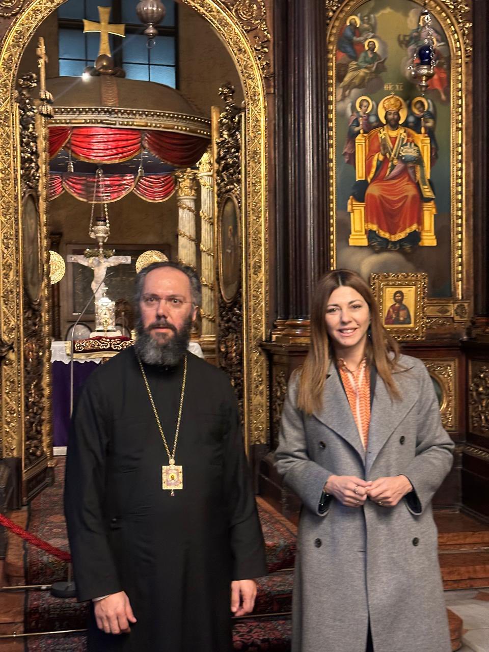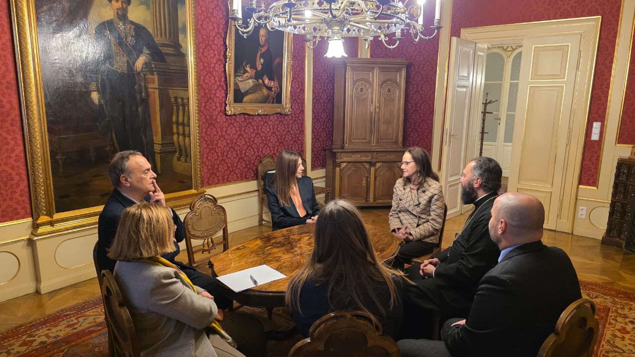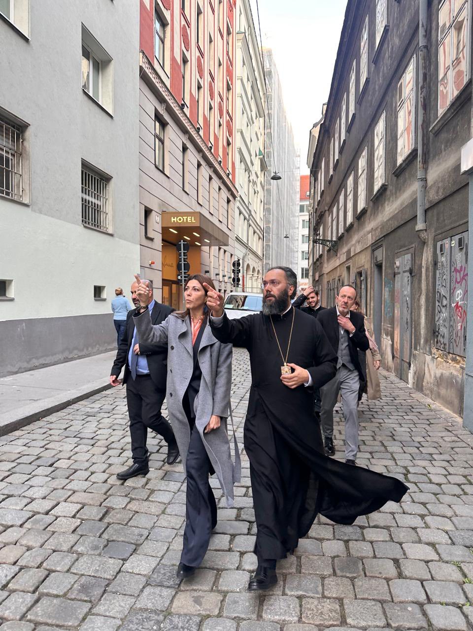 Κατά την επίσκεψή της, η Υπουργός συναντήθηκε με τον Σεβασμιώτατο Μητροπολίτη Αυστρίας, Ουγγαρίας και Μεσευρώπης κ. Αρσένιο, στην Ιερά Μητρόπολη Αυστρίας.