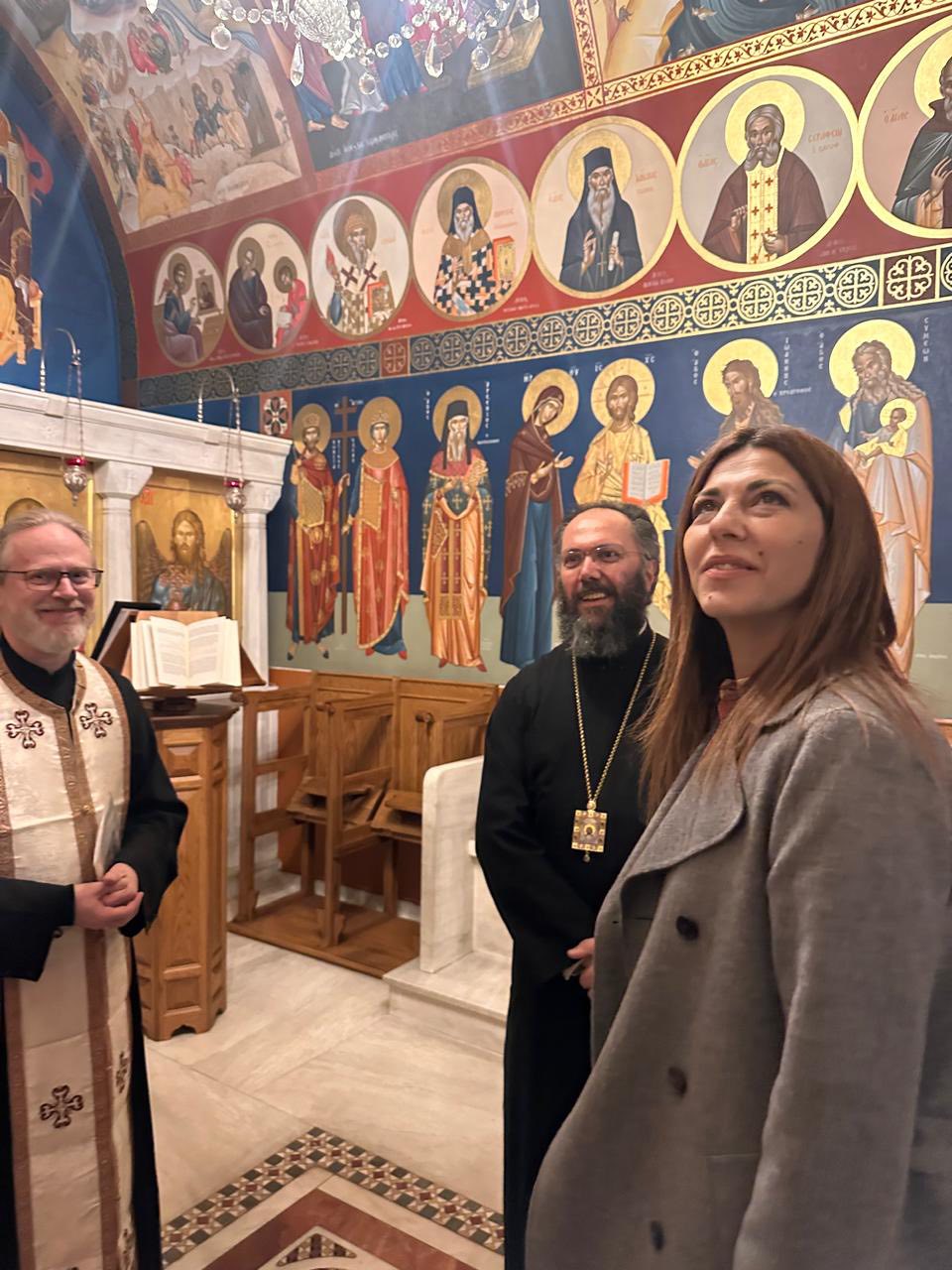 Κατά την παραμονή της στη Βιέννη, η Υπουργός επισκέφθηκε τους ιστορικούς ελληνορθόδοξους ναούς στο κέντρο της πόλης: τον Ιερό Ναό της Αγίας Τριάδας, τον Ιερό Ναό Αγίου Γεωργίου της Ελληνικής Κοινότητας — τον πρώτο ορθόδοξο ναό σε αυστριακό έδαφος — καθώς και το παρεκκλήσιο του Αγίου Ιωάννου Χρυσοστόμου.