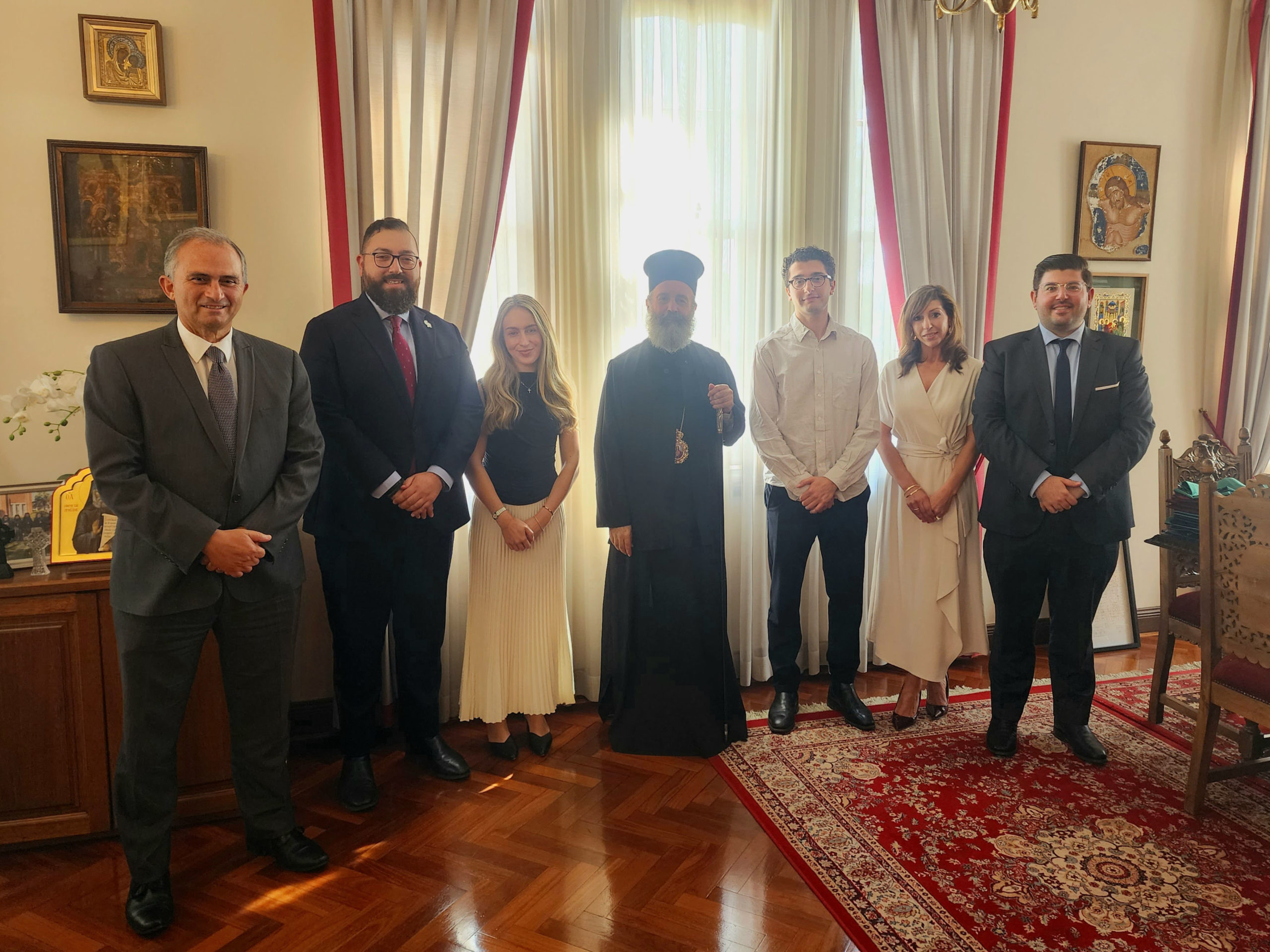 Την Πέμπτη, 18 Σεπτεμβρίου, ο Σεβασμιώτατος Αρχιεπίσκοπος Αυστραλίας κ. Μακάριος υποδέχθηκε με εγκαρδιότητα στην Έδρα της Ιεράς Αρχιεπισκοπής, στο Σύδνεϋ, αντιπροσωπεία μελών του Διοικητικού Συμβουλίου του Ελληνοαυστραλιανού Συνδέσμου (Greek Australian Society), Οργανισμού που έχει ως αποστολή την ενίσχυση των δεσμών των μελών της ελληνοαυστραλιανής κοινότητας, καθώς και την ηγεσία της Συμμαχίας «Φάρος» Νέας Νοτίου Ουαλίας, η οποία συνιστά πρωτοβουλία του Συνδέσμου με όραμα την αναβίωση της νεοελληνικής γλώσσας στην Πολιτεία της ΝΝΟ.
