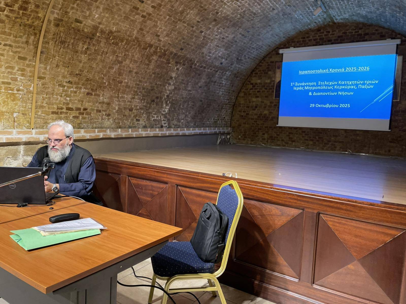 Την Τετάρτη 29 Οκτωβρίου 2025 πραγματοποιήθηκε στο Πνευματικό Κέντρο της τοπικής Εκκλησίας η πρώτη συνάντηση κατηχητών και κατηχητριών της Ιεράς Μητροπόλεως Κερκύρας, Παξών και Διαποντίων Νήσων για το νέο ιεραποστολικό έτος 2025-2026.