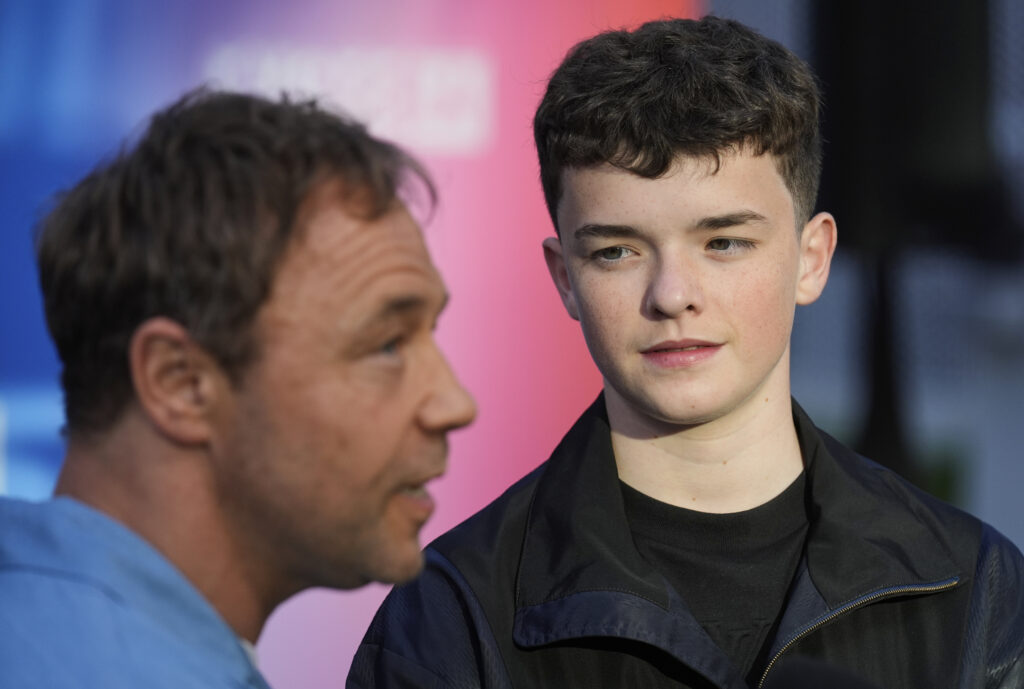 Stephen Graham, left, co-creator, co-writer, executive producer and a cast member in “Adolescence,” and cast member Owen Cooper are interviewed before an Academy of Television Arts & Sciences screening of the show on Tuesday, May 27, 2025, at Saban Media Center in Los Angeles. (AP Photo/Chris Pizzello)