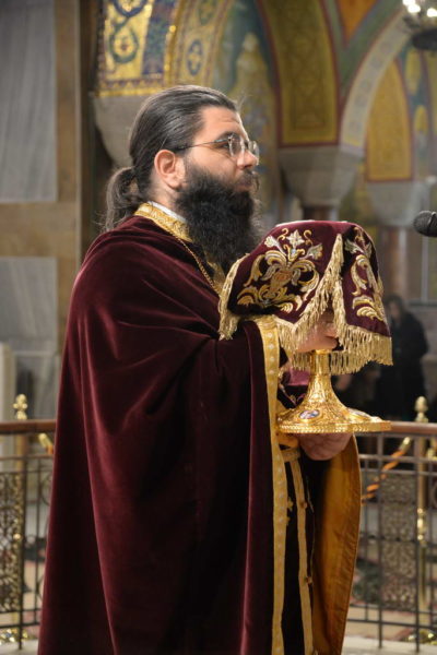 Ο Θεοφιλέστατους Επίσκοπος Κερνίτσης κ. Χρύσανθος χοροστάτησε στον Όρθρο και τέλεσε την Θεία Λειτουργία στον Ιερό Ναό του Αγίου Νεκταρίου Πατρών, μόνο με δύο Διακόνους, χωρίς άλλον Ιερέα, αφού ο Εφημέριος της Ενορίας τέλεσε την νυκτερινή Θεία Λειτουργία.