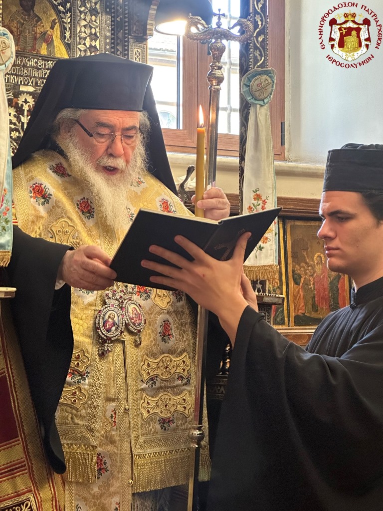 Ὡσαύτως ἑωρτάσθη διά θ. Λειτουργίας τὴν πρωΐαν εἰς τὸν αὑτὸν Ἱερὸν Ναόν, λειτουργοῦντος τοῦ Μακαριωτάτου καὶ συλλειτουργούντων τῶν Σεβασμιωτάτων Μητροπολιτῶν Ναζαρέτ κ. Κυριακοῦ καί Καπιτωλιάδος κ. Ἡσυχίου, τοῦ Γέροντος Ἀρχιγραμματέως Σεβασμιωτάτου Ἀρχιεπισκόπου Κωνσταντίνης κ. Ἀριστάρχου καὶ τῶν ἐφημερίων τοῦ Ναοῦ, τοῦ Τυπικάρη Ἀρχιμανδρίτου π. Ἀλεξίου, τοῦ Ἀρχιμανδρίτου π. Συμεών καί τοῦ ἐκπροσώπου τοῦ Πατριαρχείου τῆς Ρουμανίας Ἀρχιμανδρίτου π. Ἰωάννου καί ἐκπροσώπων τοῦ Πατριαρχείου τῆς Ρωσίας, τοῦ Ἀρχιδιακόνου π. Μάρκου καί τοῦ Ἱεροδιακόνου π. Προδρόμου, τῇ τιμητικῇ παρουσίᾳ τοῦ Γενικοῦ Προξένου τῆς Ἑλλάδος εἰς τὰ Ἱεροσόλυμα κ. Δημητρίου Ἀγγελοσοπούλου καί τῆς Προξένου κ. Ἄννης Μάντικα καὶ ὀλίγων πιστῶν, τῶν δυνηθέντων νά ὑπερβοῦν τὰς ἀντιξόους περιστάσεις τοῦ πολέμου καὶ νά προσέλθουν.