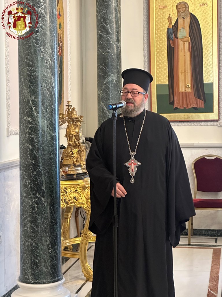 Μεταξύ άλλων ο Σεβασμιώτατος ανέφερε: “Ἀμείωτον ὑπῆρξε τό ἐνδιαφέρον τῆς Ὑμετέρας Μακαριότητος διά τήν ὑποδοχήν τῶν πρό τοῦ ὡς μή ὤφελε μαινομένου νῦν καταστροφικοῦ πολέμου συρρευσάντων πολλῶν προσκυνητῶν ἐκ τῶν Ὀρθοδόξων χωρῶν Ἑλλάδος, Ρωσίας, Ρουμανίας, Οὐκρανίας, Μολδαβίας καί ἄλλων καί τήν ἀφιέρωσιν χρόνου ὑπ’ Αὐτῆς διά τήν πνευματικήν καθοδήγησιν αὐτῶν εἰς τήν κατανόησιν τῆς ὠφελείας τῆς προσκυνηματικῆς θεωρίας καί τῆς ἐνισχύσεως τῆς πίστεως αὐτῶν ἐκ τῆς προσκυνήσεως τοῦ Παναγίου Τάφου, τοῦ Φρικτοῦ Γολγοθᾶ καί τῶν λοιπῶν Παναγίων Προσκυνημάτων καί τήν προφύλαξιν ἐκ τῶν προωθουμένων τήν σήμερον θεωριῶν ἀπαλείψεως τῆς ἐθνικῆς, θρησκευτικῆς, ἔτι καί βιολογικῆς ταυτότητος τῶν ἀνθρώπων. Τοιαύτην ὑποδοχήν εὕρισκον καί τά τέκνα τοῦ ποιμνίου τοῦ ἡμετέρου Πατριαρχείου. Ὁσάκις ἐζήτουν, ἡ θύρα τοῦ Πατριαρχείου ἦτο ἀνοικτή δι’ αὐτούς, εἶχον τήν ἀναφοράν των εἰς τό Πατριαρχεῖον δι’ ἠθικήν καί ὑλικήν συμπαράστασιν καί δή εἰς μίαν τοιαύτην περίοδον τοῦ μαινομένου καταστροφικοῦ πολέμου“.