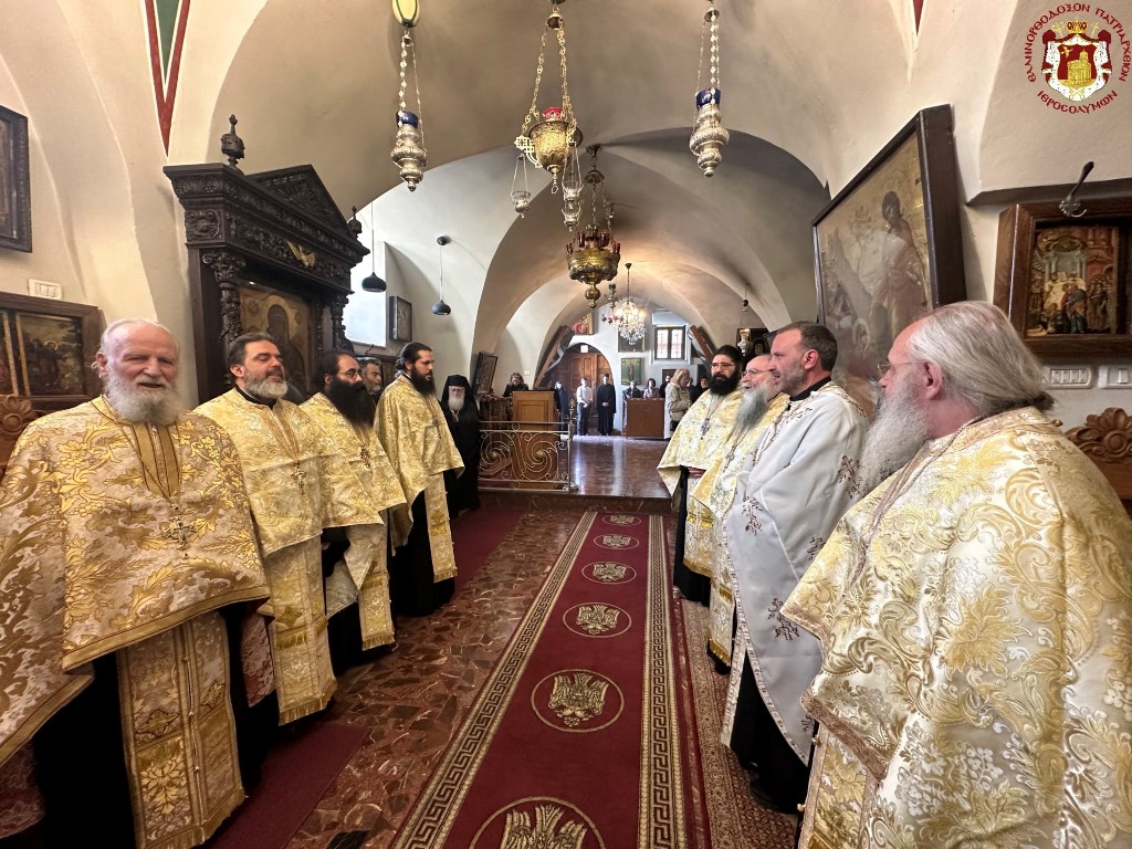Διά τόν λόγον τοῦτον ἐτελέσθη πανηγυρική Θεία Λειτουργία μετά Δοξολογίας εἰς τόν Πατριαρχικόν καί Μοναστηριακόν Ναόν τῶν ἁγίων Κωνσταντίνου καί Ἑλένης ὑπό τῆς Ἁγιοταφιτικῆς Ἀδελφότητος τῇ ἐπιτραπείσῃ ἐκ τοῦ μαινομένου πολέμου συμμετοχῇ τῶν Πατέρων αὐτῆς καί τῶν μελῶν τοῦ ποιμνίου αὐτῆς ἐκ τῆς δικαιοδοσίας τοῦ Πατριαρχείου εἰς Ἰσραήλ, Ἰορδανίαν καί Παλαιστινιακήν Ἀρχήν.