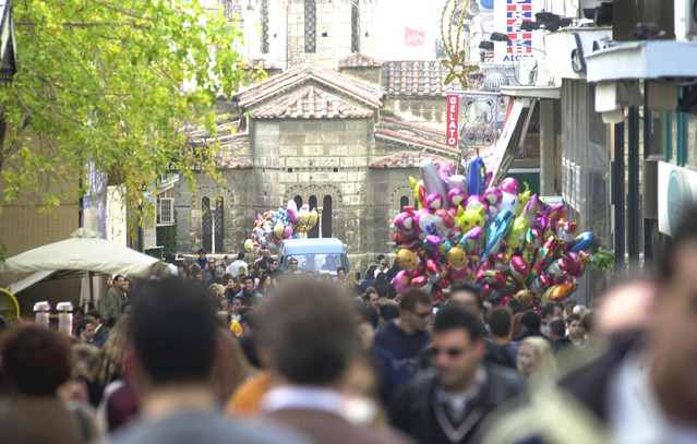 Ανάμεσα στους Αθηναίους που κρατούν τσάντες με δώρα, διακρίνονται και πολλοί τουρίστες με τις βαλίτσες ανά χείρας, οι οποίοι επέλεξαν την Αθήνα για την αλλαγή του χρόνου, όπως κατέγραψε η κάμερα του Orange Press.