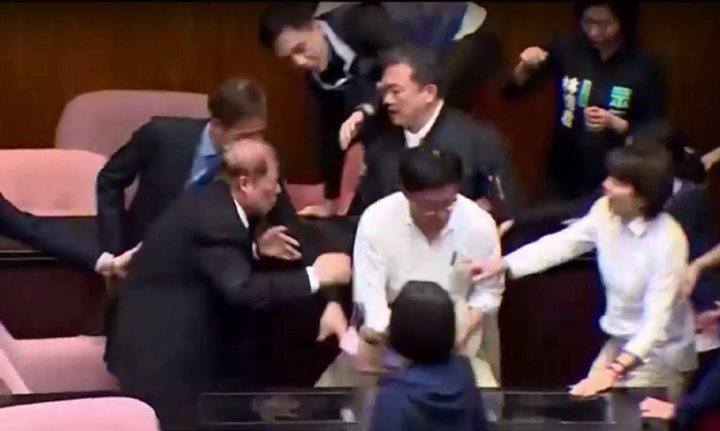Ένα απίστευτο περιστατικό σημειώθηκε στην Ταϊβάν, όταν βουλευτές πιάστηκαν στα χέρια για τις κοινοβουλευτικές μεταρρυθμίσεις.