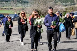Είχε προηγηθεί επιμνημόσυνη δέηση για τις 57 ψυχές που «έφυγαν» έναν χρόνο πριν.στον Ιερό Ναό του Αγίου Θωμά στο Μακρυχώρι του Δήμου Τεμπών, αμέσως μετά τη Θεία Λειτουργία. Μάλιστα, στο σημείο βρέθηκαν συγγενείς των θυμάτων σύμφωνα με το larissanet.gr.