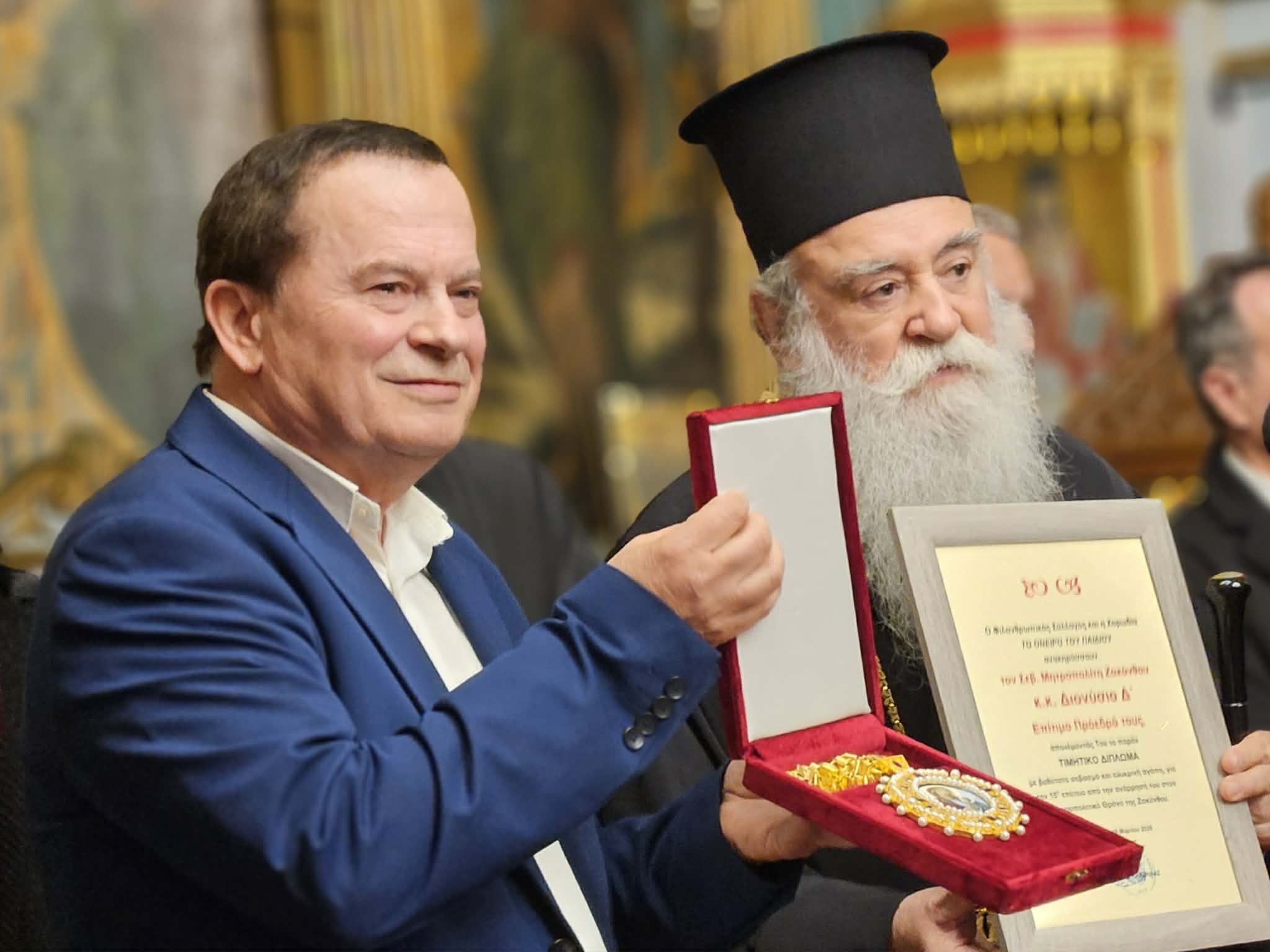 Η εκδήλωση ολοκληρώθηκε με μια ιδιαίτερα συγκινητική στιγμή: την απονομή του τίτλου του Επίτιμου Προέδρου του Φιλανθρωπικού Συλλόγου και της Χορωδίας «Το Όνειρο του Παιδιού» στον Σεβ. Μητροπολίτη Ζακύνθου κ. Διονύσιο Δ΄. Η τιμητική αυτή διάκριση ανέδειξε την ευγνωμοσύνη της τοπικής κοινωνίας για τη δεκαπενταετή ποιμαντορία του από το 2011, καθώς και για την διαρκή μέριμνά του προς τον λαό και την υποστήριξη δράσεων που καλλιεργούν τον πολιτισμό και την εκκλησιαστική ζωή του τόπου.