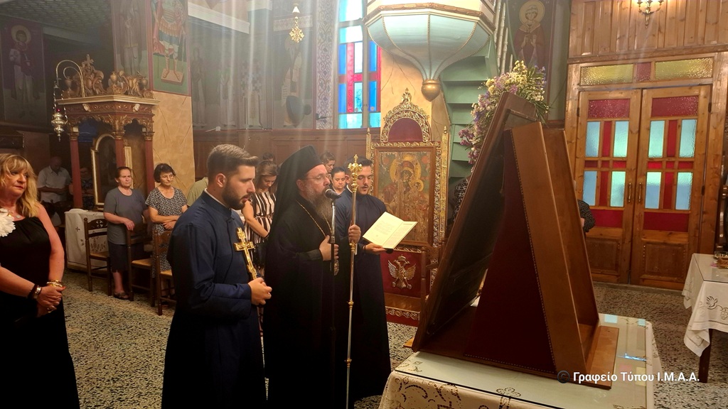 Στην πυρόπληκτη Σταμνά Αιτωλοακαρνανίας και στον Ιερό Ναό Αγίου Νικολάου χοροστάτησε στην τελευταία Παράκληση προς την Υπεραγία Θεοτόκο ο Σεβασμιώτατος Μητροπολίτης Αιτωλίας και Ακαρνανίας κ. Δαμασκηνός, το απόγευμα της Τετάρτης 13 Αυγούστου 2025.