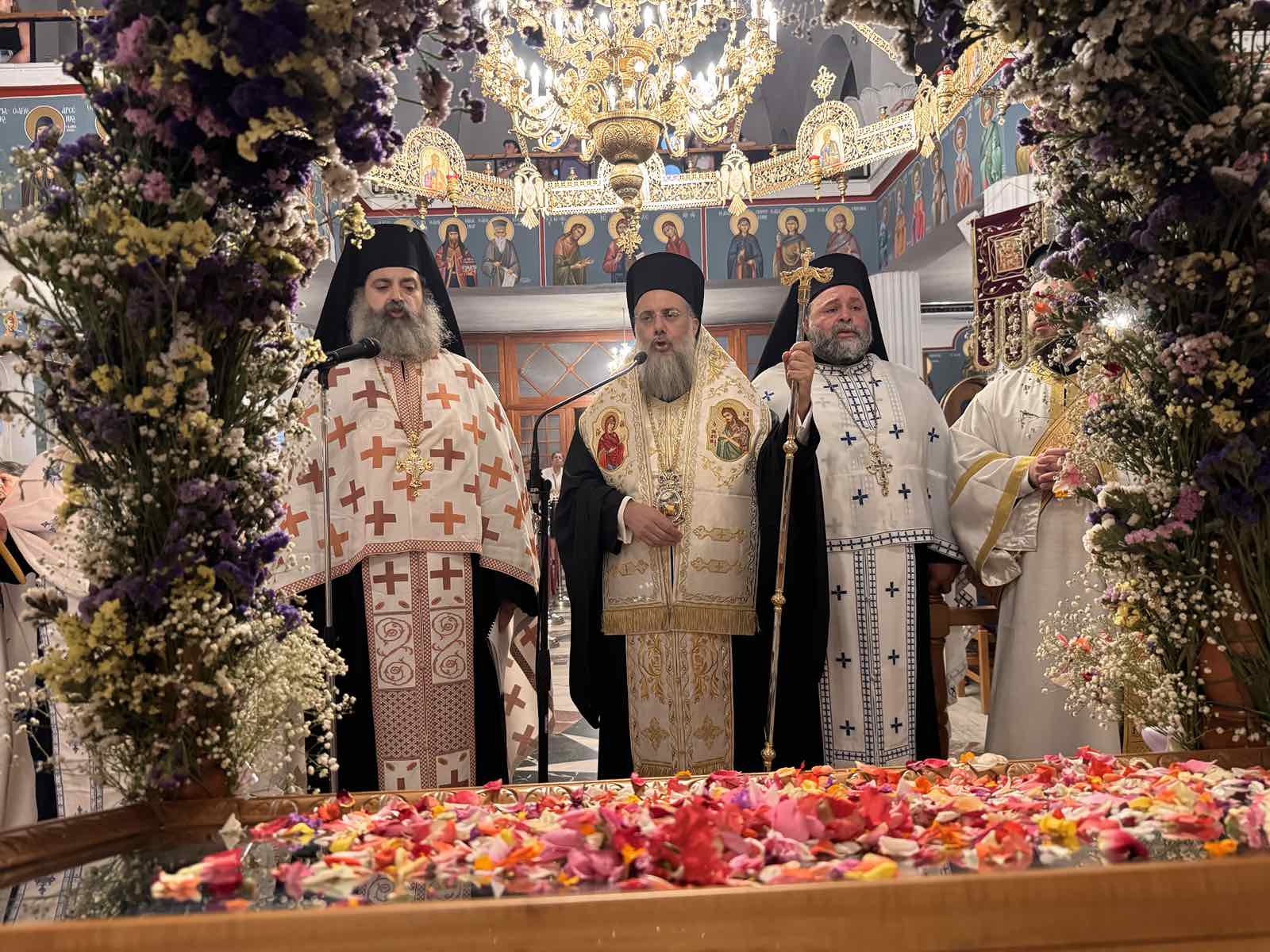 Η Κοίμησή Της, λοιπόν, δεν είναι το τέλος, αλλά η αρχή μιας αδιάκοπης παρουσίας. Από σήμερα και για πάντα, η Μάνα μας είναι στον θρόνο του ουρανού, δεόμενη ακατάπαυστα για τα παιδιά Της», ανέφερε ο Σεβασμιώτατος.