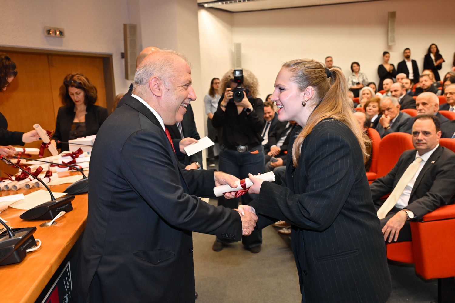 Χαιρετισμό απηύθυνε επίσης ο Αντιπρύτανης Έρευνας και Δια Βίου Μάθησης, Καθηγητής Δημοσθένης Κυριαζής, επισημαίνοντας ότι η διάκριση, πέρα από αναγνώριση της προσπάθειας του παρελθόντος, λειτουργεί ως εφαλτήριο για το παρόν και το μέλλον των βραβευθέντων στον επαγγελματικό και επιστημονικό στίβο.