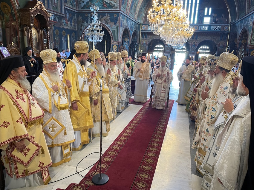 Στον Όρθρο χοροστάτησε ο Σεβ. Μητροπολίτης Σιδηροκάστρου κ. Μακάριος, ενώ της Ευχαριστιακής Συνάξεως προέστη ο Σεβασμιώτατος Μητροπολίτης Ύδρας, Σπετσών και Αιγίνης κ. Εφραίμ συμπαραστατούμενος από τους Σεβασμιωτάτους Μητροπολίτες Μπραζαβίλ και Γκαμπόν κ. Θεόδωρο, Εκπρόσωπο του Μακαριωτάτου Πάπα και Πατριάρχου Αλεξανδρείας κ. κ. Θεοδώρου Β’, Σιδηροκάστρου κ. Μακάριο, Χαλκίδος κ. Χρυσόστομο, Κερκύρας κ. Νεκτάριο, Ζιχνών και Νευροκοπίου κ. Ιερόθεο, Άρτης κ. Καλλίνικο, Γλυφάδας κ. Αντώνιο, Ηλείας κ. Αθανάσιο, Θεσσαλιώτιδος κ. Τιμόθεο, Σταγών κ. Θεόκλητο, Φθιώτιδος κ. Συμεών, Θεσσαλονίκης κ. Φιλόθεο, Γόρτυνος και Μεγαλοπόλεως κ. Νικηφόρο, Καλαβρύτων και Αιγιαλείας κ. Ιερώνυμο, Τοποτηρητή της Ι. Μητροπόλεως Κορίνθου, ως και τους Θεοφιλεστάτους Επισκόπους Κερνίτσης κ. Χρύσανθο, Σκοπέλου κ. Νικόδημο, συμπροσευχομένου του πρωτοσυγκέλου της Ι. Μητροπόλεώς μας, Επισκόπου Κεγχρεών κ. Αγαπίου.