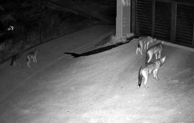 Μέχρι την πόρτα ενός σπιτιού φαίνεται να έφτασαν τέσσερις λύκοι όπως φαίνεται από βίντεο το οποίο κατέγραψε κάμερα ασφαλείας.
