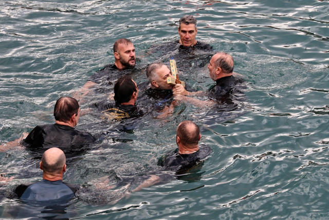 Επιβαίνουν και μέλη του Συνδέσμου Ελλήνων βατραχανθρώπων και υποβρύχιων καταστροφών, ενώ απόστρατοι και εν ενεργεία στρατιωτικοί βούτηξαν στα νερά και ο πρώτος δέχτηκε τα συγχαρητήρια του Προέδρου της Δημοκρατίας και του Αρχιεπισκόπου Ιερωνύμου.