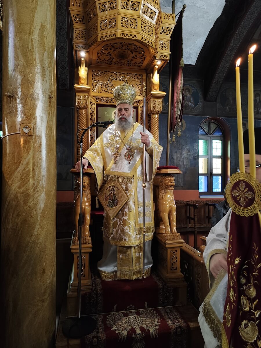 Τέλος, προέτρεψε το εκκλησίασμα να προσεύχεται θερμά για τους κεκοιμημένους αδελφούς, παρακαλώντας τον Θεό να τους καταστήσει μετόχους της Βασιλείας Του και να τους αναπαύσει κοντά Του, ευχόμενος σε όλους δύναμη στον πνευματικό αγώνα και κατακλείοντας με τη δοξολογική ευχή: «Ευλογητός είναι ο Θεός».
