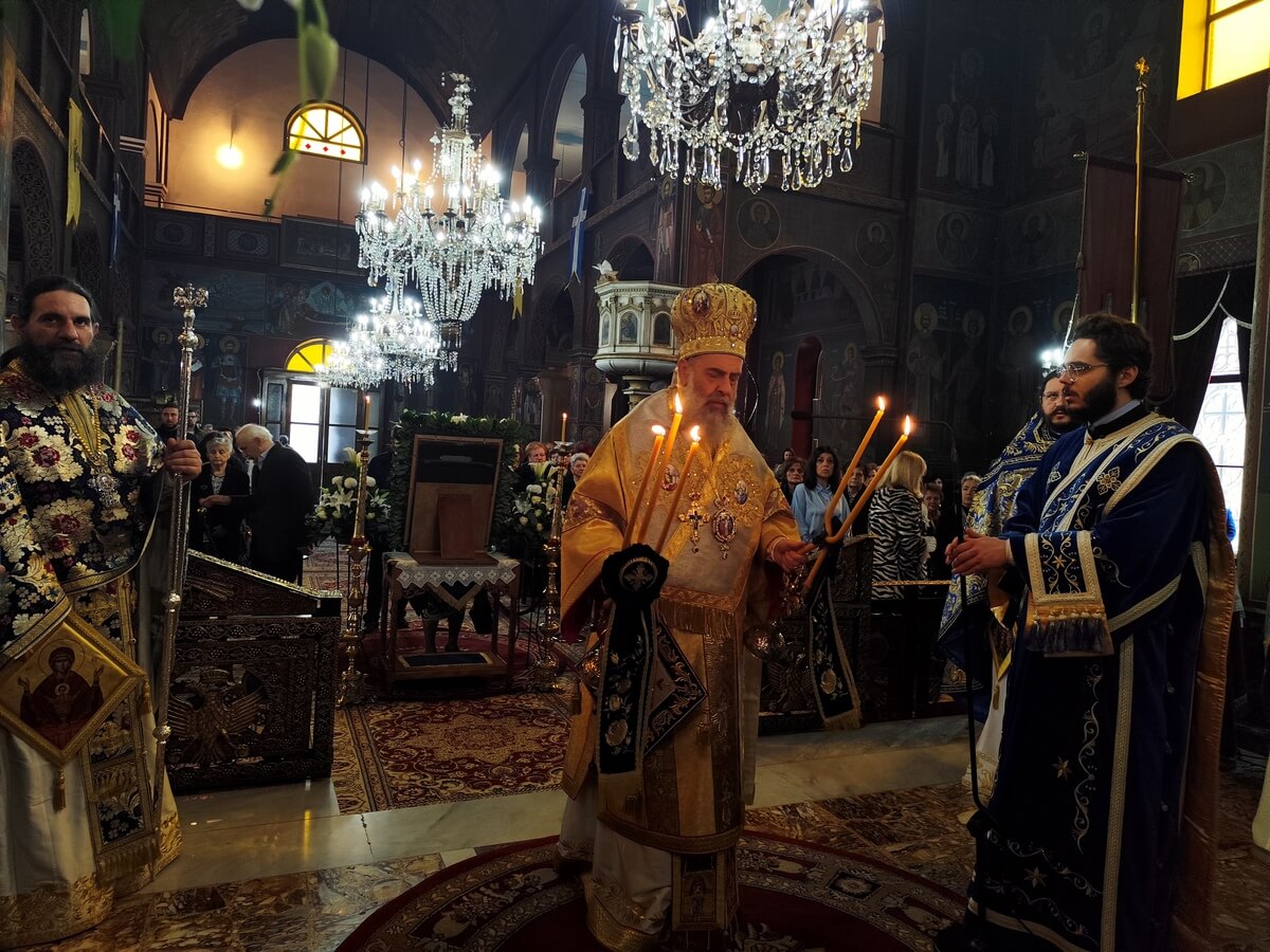 Την Τετάρτη 25 Μαρτίου, ημέρα κατά την οποία η Εκκλησία μας εορτάζει το χαρμόσυνο μήνυμα του Ευαγγελισμού της Θεοτόκου και η Πατρίδα μας τιμά την εθνική επέτειο της Επαναστάσεως του 1821, ο Σεβασμιώτατος Μητροπολίτης Θεσσαλιώτιδος κ. Τιμόθεος χοροστάτησε στην ακολουθία του Όρθρου και τέλεσε τη Θεία Λειτουργία στον πανηγυρίζοντα Ιερό Ναό Ευαγγελιστρίας Καρδίτσης.