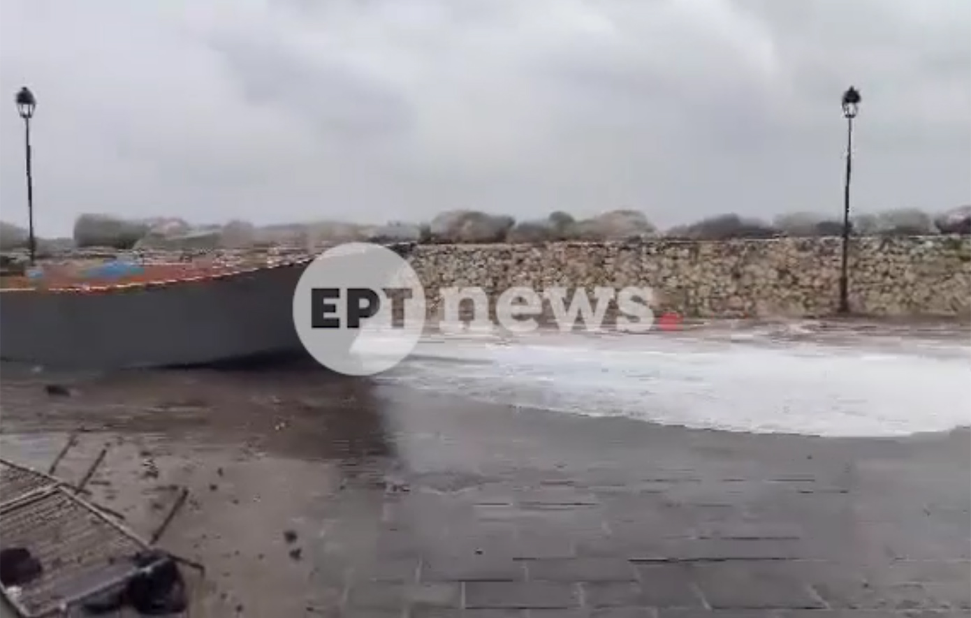 Ζημιές, αποκλεισμός της περιοχής, μετανάστες εγκλωβισμένοι και δυσκολίες στην τροφοδοσία συνθέτουν το σκηνικό που περιγράφει η δήμαρχος του νησιού, Λίλιαν Στεφανάκη. Οι νοτιοανατολικοί άνεμοι ξεπερνούν τα 7 μποφόρ. Από την κακοκαιρία ανατράπηκαν βάρκες, ενώ από τα κύματα παρασύρθηκε και ένα αυτοκίνητο.