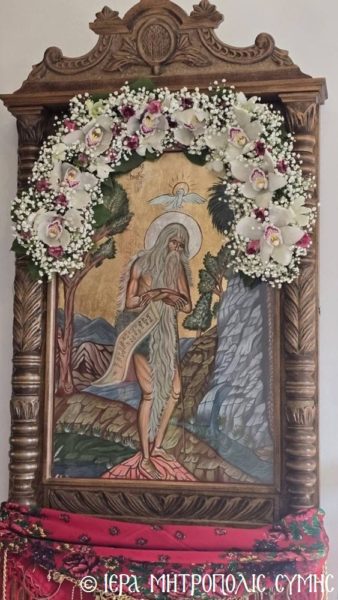 Διά της Χάριτος του Θεού, η Ιερά Μητρόπολή Σύμης, Τήλου, Χάλκης και Καστελλορίζου και συγκεκριμένα η Νήσος της Σύμης, έχει από σήμερα μια ακόμη ευλογία, αυτήν του Οσίου Ονουφρίου του Αιγυπτίου. Και τούτο, διότι η ευσέβεια της φιλαγίου οικογενείας Χαριδήμου και Χαριστούλας Πορτοκάλλη προς τον Όσιον, κατόπιν διαφόρων σημείων, έφερε εις πέρας έργο θεάρεστο, την ανέγερση επ’ ονόματι του Οσίου, Ιερού Ναϋδρίου σε ιδιόκτητο κτήμα της, που ευρίσκεται εις την περιοχή «Ξίσος» της Σύμης.