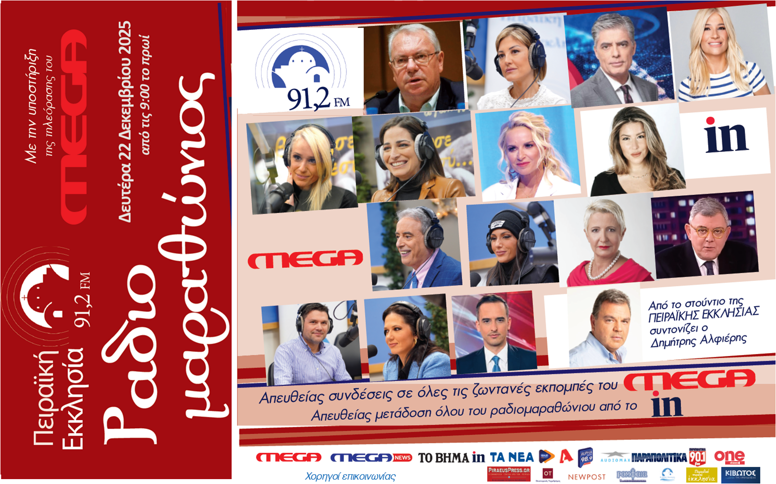 Τη Δευτέρα ο μεγάλος Ραδιομαραθώνιος από την Πειραϊκή Εκκλησία 91,2 fm μέσα από την τηλεόραση του MEGA
