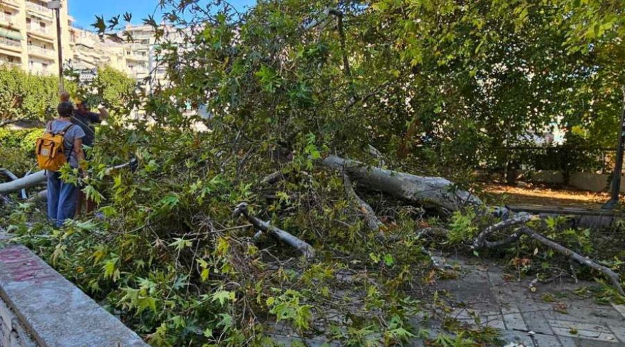 Παρολίγον τραγωδία το απόγευμα της Πέμπτης στη Θεσσαλονίκη, όταν ένα μεγάλο κλαδί από πλατάνι στην Πλατεία Ναυαρίνου έπεσε ξαφνικά.
