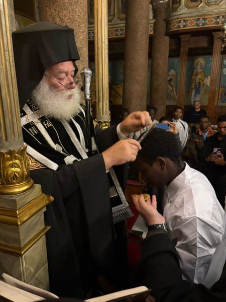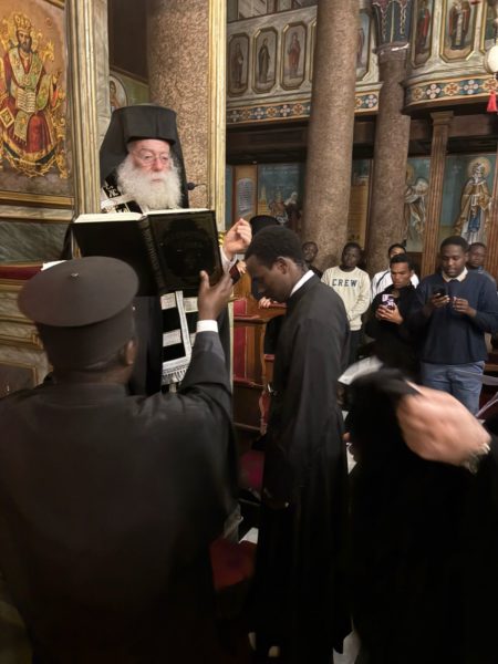 Απευθυνόμενος δε προς τον νέο μοναχό, ο Μακαριώτατος, με λόγο πατρικό και καρδιακό, του απηύθυνε πνευματικές νουθεσίες διά τη νέα πορεία της ζωής του εντός της Εκκλησίας, υπογραμμίζοντας ότι η Εκκλησία του Αποστόλου Μάρκου, «Μήτηρ και Τροφός» των λαών της Αφρικής, καλείται να αναδείξει γηγενείς εργάτες του Ευαγγελίου, οι οποίοι θα διακονήσουν με θυσιαστικό φρόνημα τον λαό του Θεού.