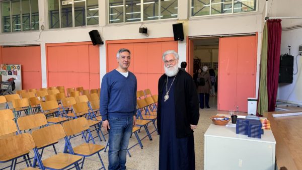 Ο Σεβασμιώτατος Μητροπολίτης Ιλίου, Αχαρνών και Πετρουπόλεως κ. Αθηναγόρας συνοδευόμενος από τον Διευθυντή του Ιδιαιτέρου Γραφείου του κ. Χρήστο Μήτσιο, πραγματοποίησε επίσκεψη στο 6ο Γυμνάσιο Ιλίου την Παρασκευή 13 Μαρτίου 2026, έπειτα από πρόσκληση του θεολόγου του σχολείου κ. Κωνσταντίνου Παλαιολόγου, σε συνεννόηση με τη Διεύθυνση του σχολείου, η οποία στήριξε τη διοργάνωση της συνάντησης.