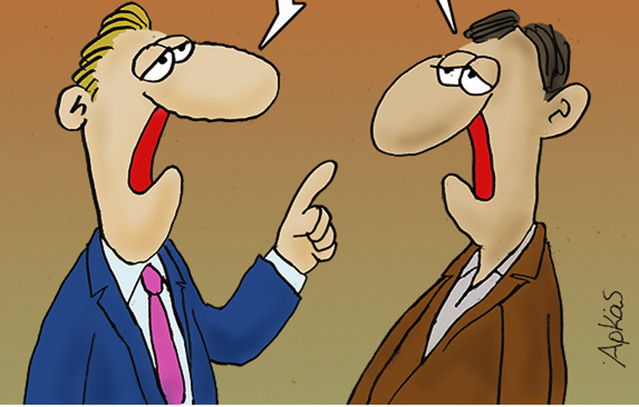Όπως θα δείτε στο σκίτσο δύο άνδρας συνομιλούν μεταξύ τους και λένε τα εξής: