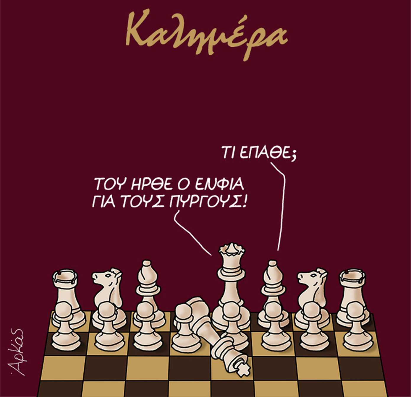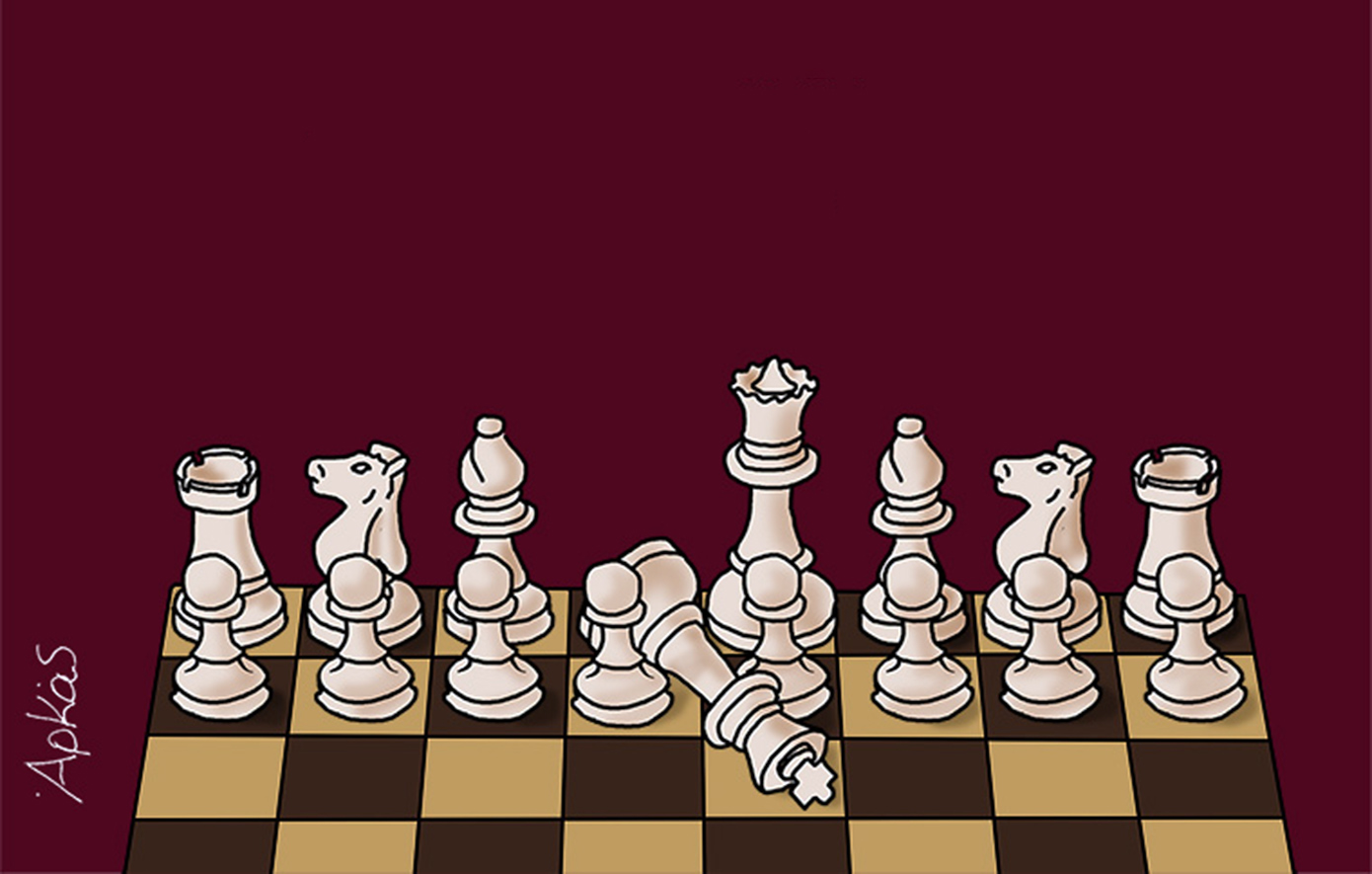 «Τι έπαθε» ρωτάει το ένα πιόνι βλέποντας το άλλο που έχει πέσει.