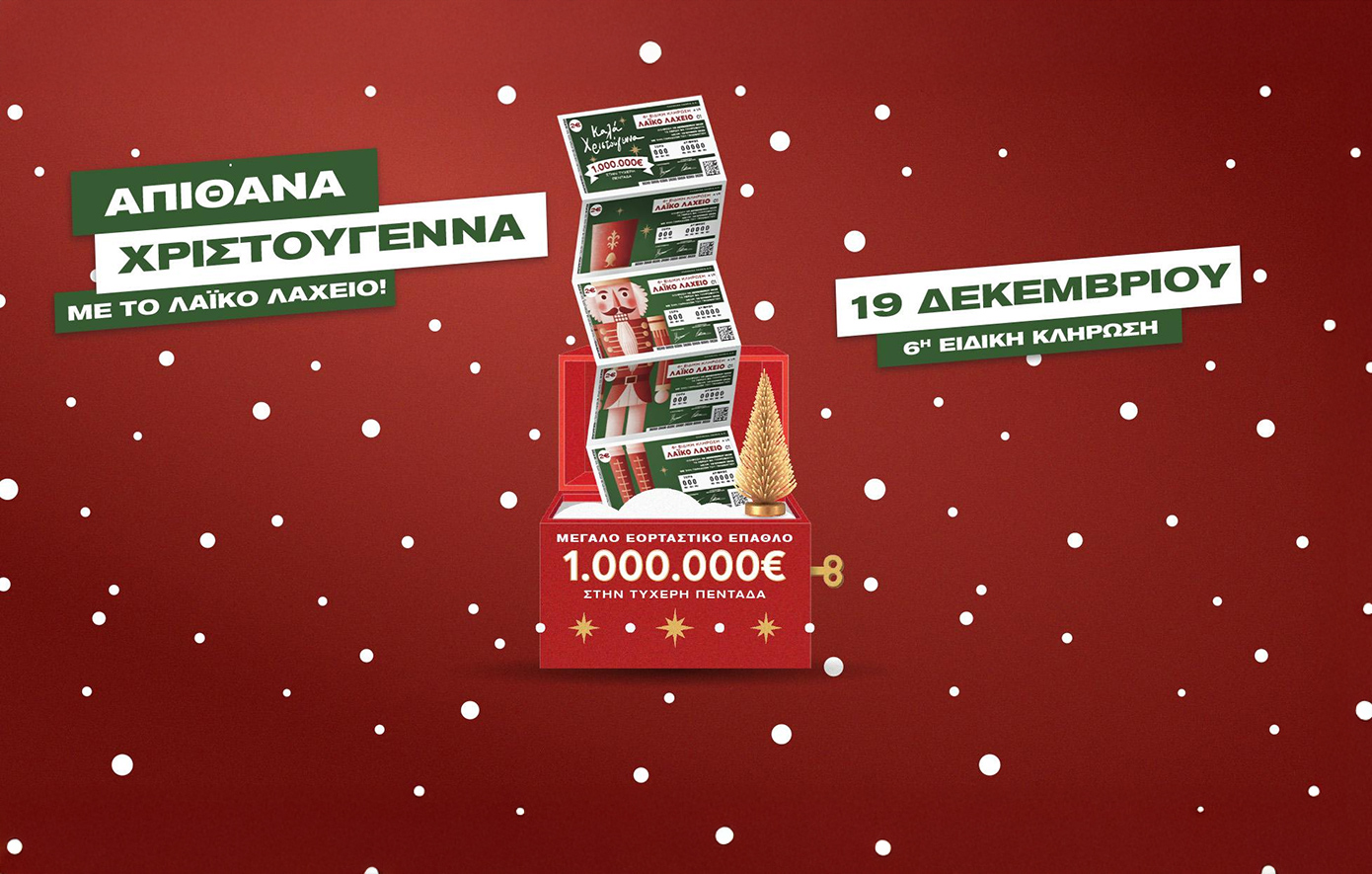 Το Λαϊκό Λαχείο στον ρυθμό των Χριστουγέννων: Μοιράζει μέχρι και 1.000.000 ευρώ στην ειδική κλήρωση της Παρασκευής 19 Δεκεμβρίου