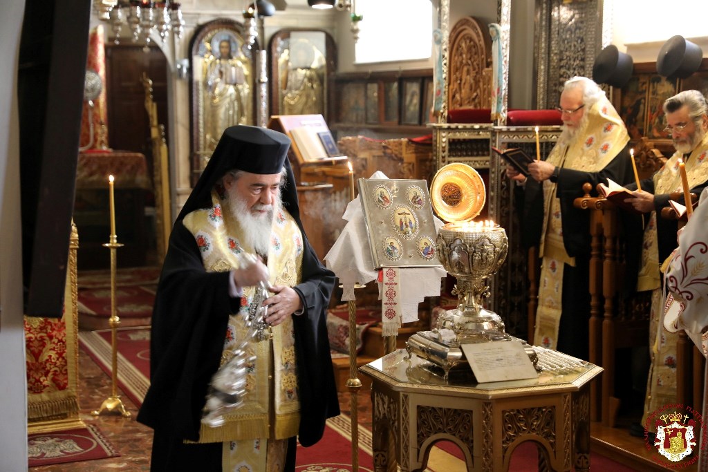 Συμφώνως προς το Τυπικό της Εκκλησίας, του Ιερού Ευχελαίου προεξήρξε η Α.Θ.Μ. ο Πατριάρχης Ιεροσολύμων κ.κ. Θεόφιλος, συνιερουργούντων μετ΄ Αυτού έξι Αρχιερείς, για να είναι επτά τον αριθμό.