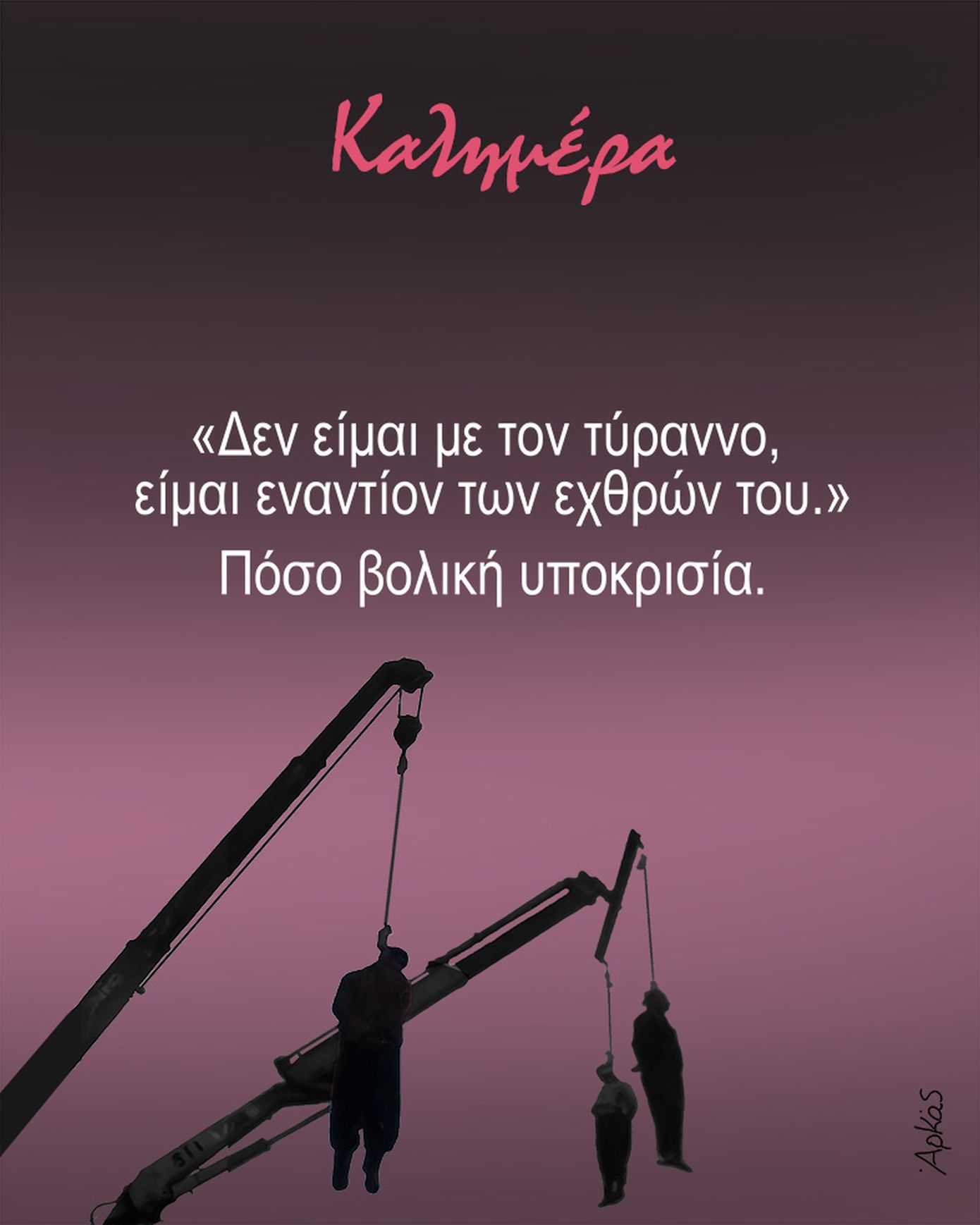 «Δεν είμαι με τον τύραννο, είμαι εναντίον των εχθρών του». Πόσο βολική υποκρισία: Αυτό είναι το μήνυμα που στέλνει ο Αρκάς.