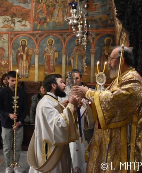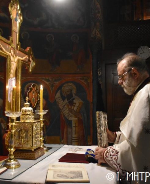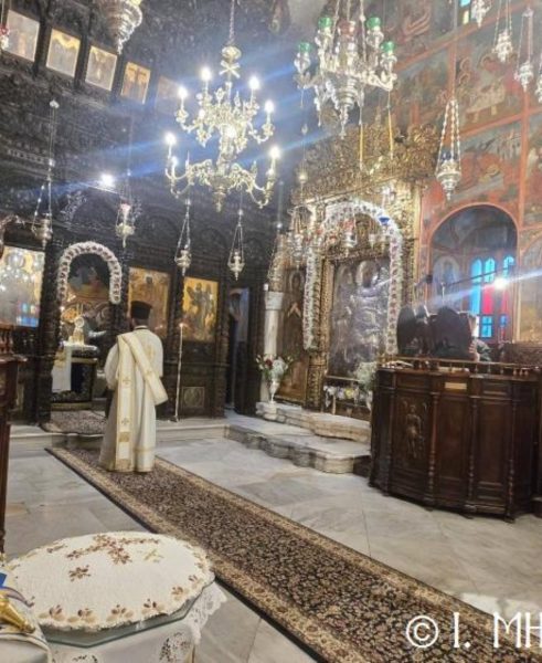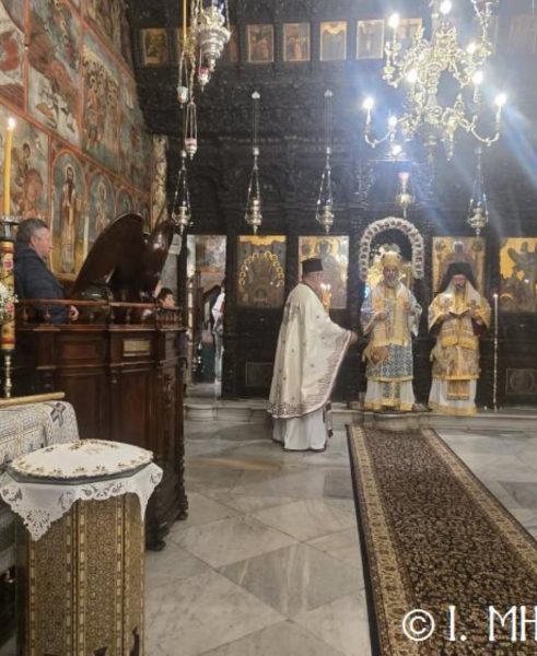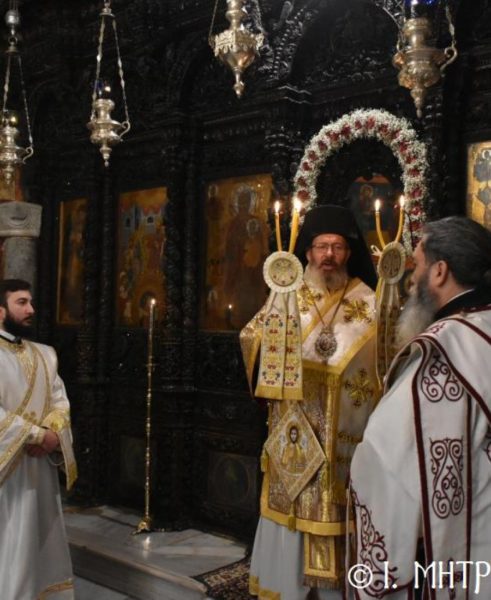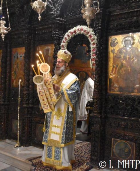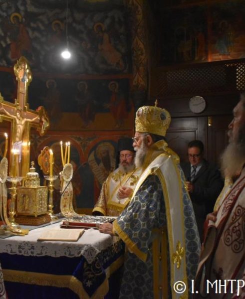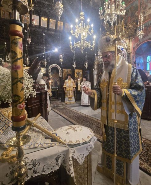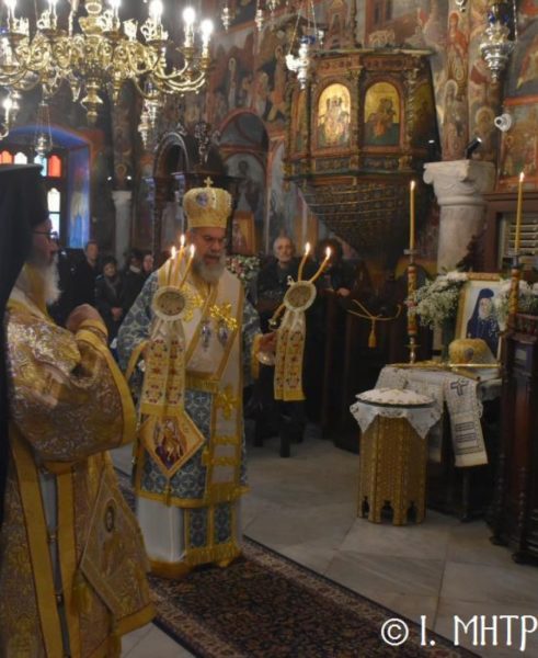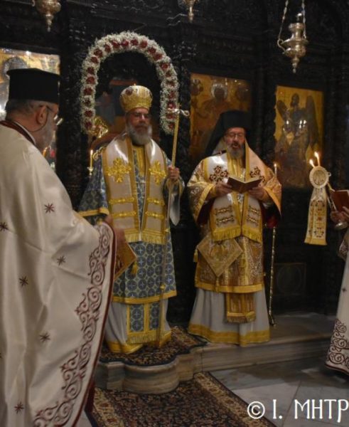 Ο Σεβ. Ποιμενάρχης κ. Χρυσόστομος, χοροστάτησε του Όρθρου, ετέλεσε την Θεία Λειτουργία και εν συνεχεία μετά την απόλυση, προέστη του Ιερού Μνημοσύνου, πλαισιούμενος υπό του Θεοφιλ. Βοηθού Αυτού Επισκόπου Ροδοστόλου κ. Αντωνίου, Καθηγουμένου της Ι. Μονής, του Γεν. Αρχιερατικού Επιτρόπου, Πρωτοπρ. Στεφάνου Μακρή και των Διακόνων μας π. Παύλου Τερεζάκη και π. Νικολάου Καρμανιώλου. Την ιερά υμνωδία απέδωσαν γλυκυφθόγγως οι Ιεροψάλτες κ. Ελευθέριος Ξηράκης κ. κ. Δημοσθένης και Μερκούριος Γιανναράς και κ. Ευάγγελος Λαγός, ενώ μεταξύ του πολυπληθούς εκκλησιάσματος συμμετείχαν, ο Δήμαρχος Σύμης κ. Ελευθέριος Παπακαλοδούκας και ο Στρατιωτικός Διοικητής Δ.Α.Ν. Σύμης Συνταγματάρχης κ. Χαράλαμπος Κατηφόρης.