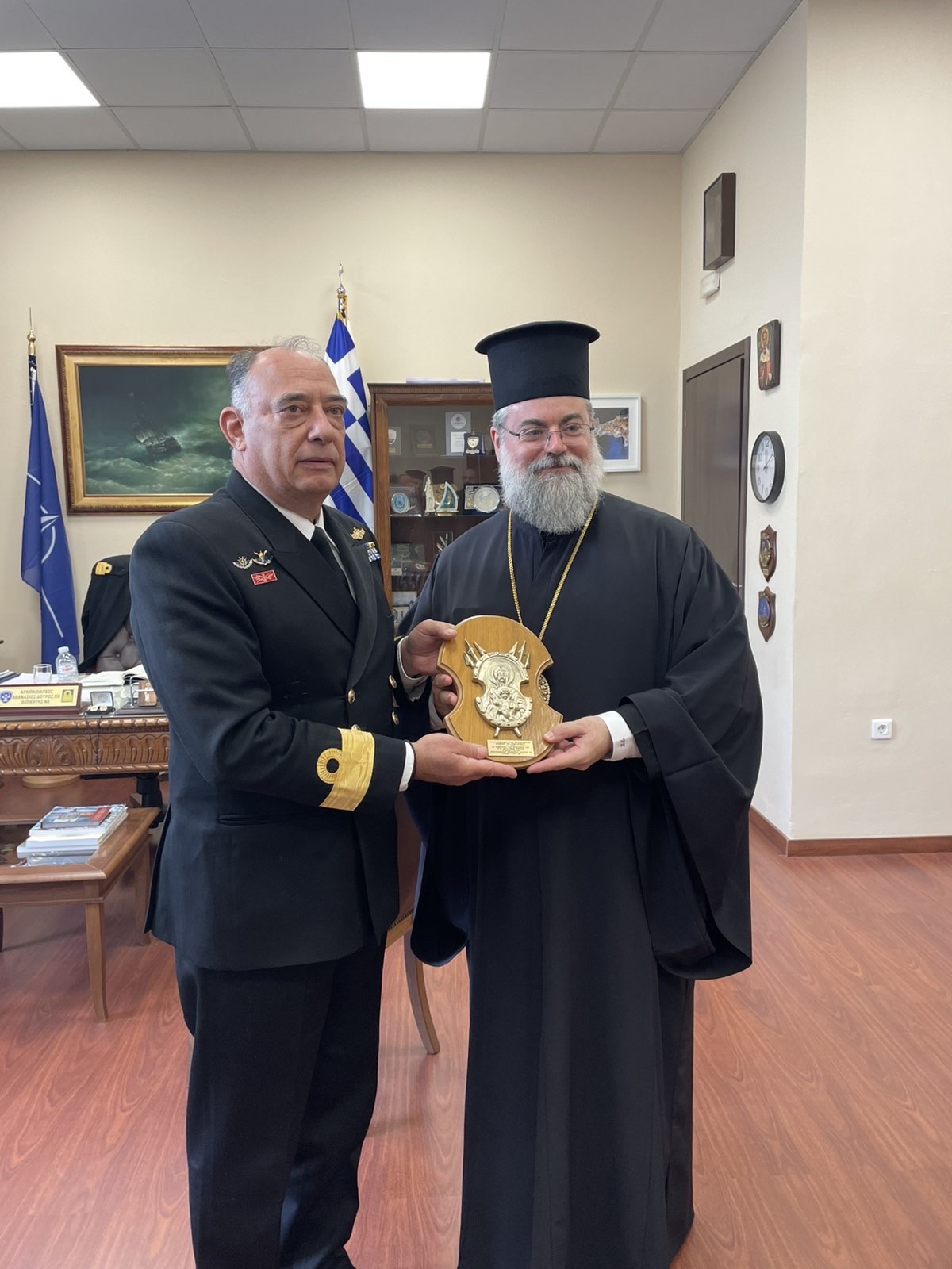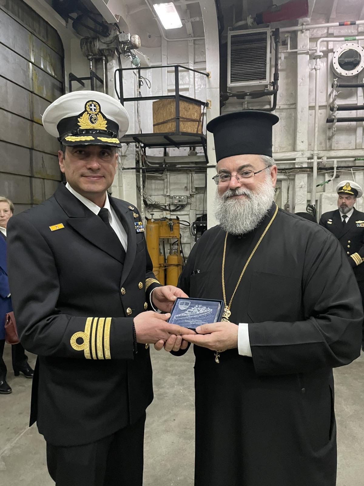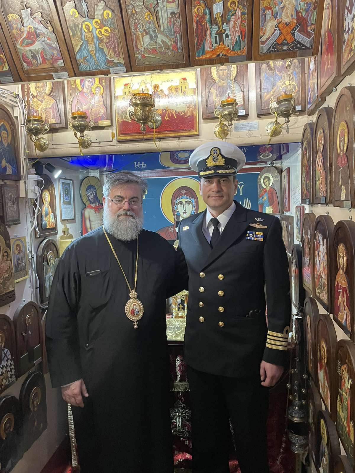 Παράλληλα επισκέφθηκε και την φρεγάτα ΑΙΓΑΙΟΝ (F460) υποδεχόμενος από τον Κυβερνήτη του πλοίου Αντιπλοίαρχο Τσουράκη Ιωάννη και το πλήρωμα, ενώ προσκύνησε στο παρεκκλήσιο του Αγίου Νικολάου και του Αγίου Νικάνδρου που βρίσκεται εντός του πλοίου.