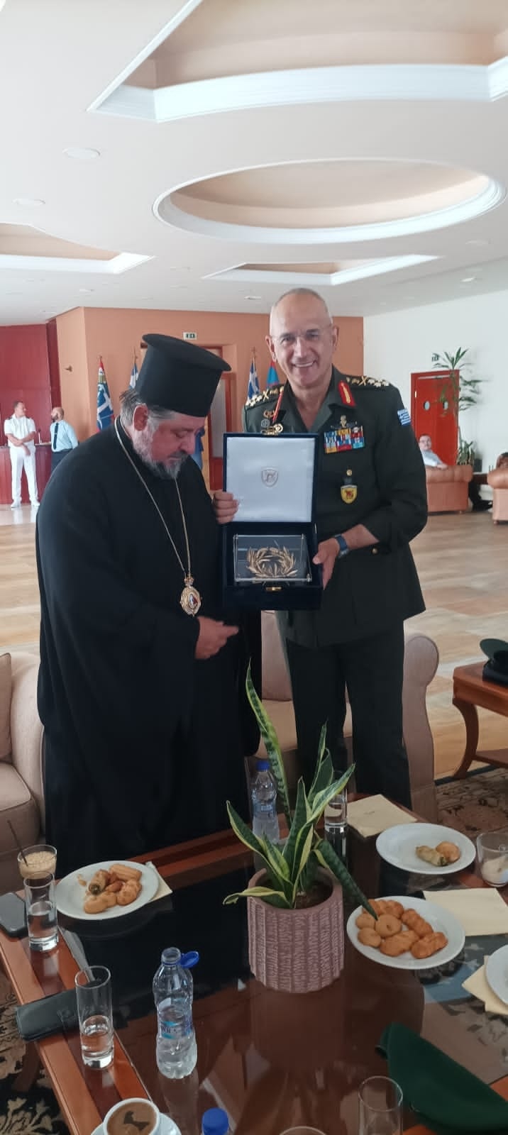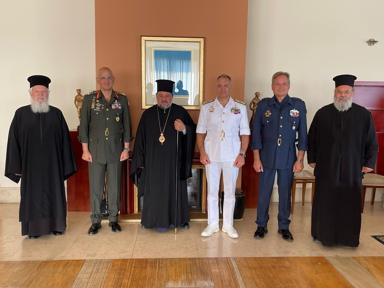 Επιπλέον, μετέφερε και τις πατρικές ευχές του Μακαριωτάτου Αρχιεπισκόπου Αθηνών και πάσης Ελλάδος κ.κ. Ιερωνύμου προς τους Αρχηγούς και τα στελέχη των Ενόπλων Δυνάμεων, ευχόμενος δύναμη, πρόοδο, ενότητα και ευημερία, αλλά και τη συνέχιση του υψηλού έργου τους σε αυτές τις δύσκολες και απαιτητικές εποχές για την πατρίδα μας.