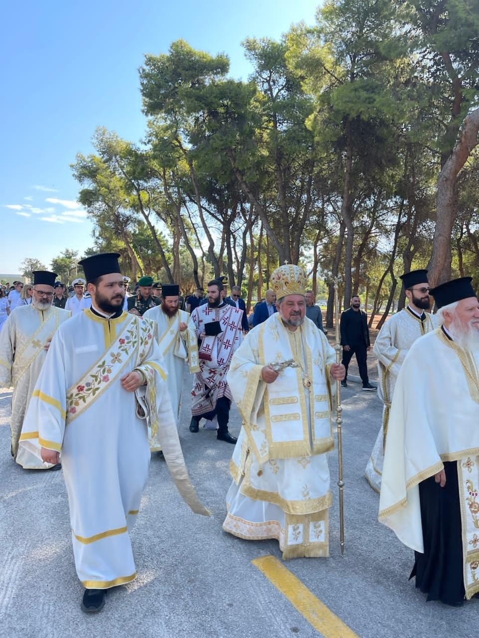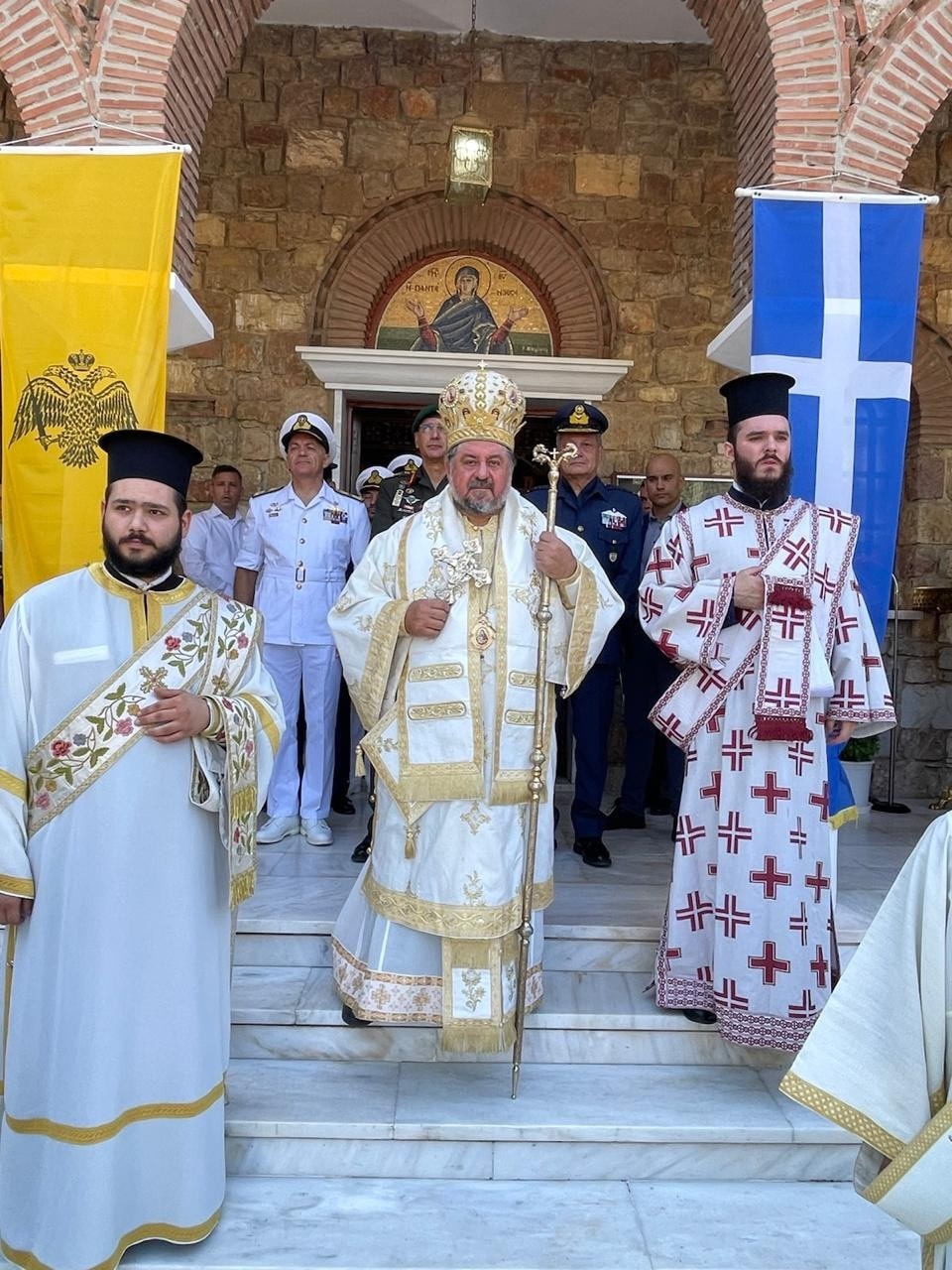 Της πανηγυρικής Θείας Λειτουργίας προεξήρχε ο Σεβασμιώτατος Μητροπολίτης Ζάμπιας και Μοζαμβίκης κ. Ιωάννης, ο οποίος πλαισιώθηκε από τον Διευθυντή της Θρησκευτικής Υπηρεσίας των Ενόπλων Δυνάμεων, Αρχιμανδρίτη κ. Μελέτιο Κουράκλη, τον π. Νεκτάριο Μαρκάκη του ΓΕΣ, τον π. Παύλο Καρακατσανίδη του ΓΕΑ, τον π. Δημήτριο Βαρσαμίδη του Λιμενικού Σώματος, τον πρώην Διευθυντή της Θρησκευτικής Υπηρεσίας των Ενόπλων Δυνάμεων, π. Νικόλαο Γουρδούπη, καθώς και από στρατιωτικούς ιερείς και διακόνους.