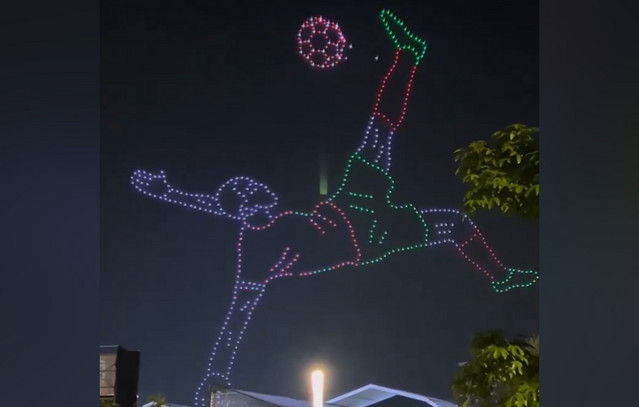 Στο Μαρόκο, θέλησαν να τον τιμήσουν με έναν ξεχωριστό τρόπο, οργανώνοντας ένα εντυπωσιακό drone show κοντά στο «Anfa Park», όπου στον νυχτερινό ουρανό σχηματίστηκε το χαρακτηριστικό ψαλιδάκι του.
