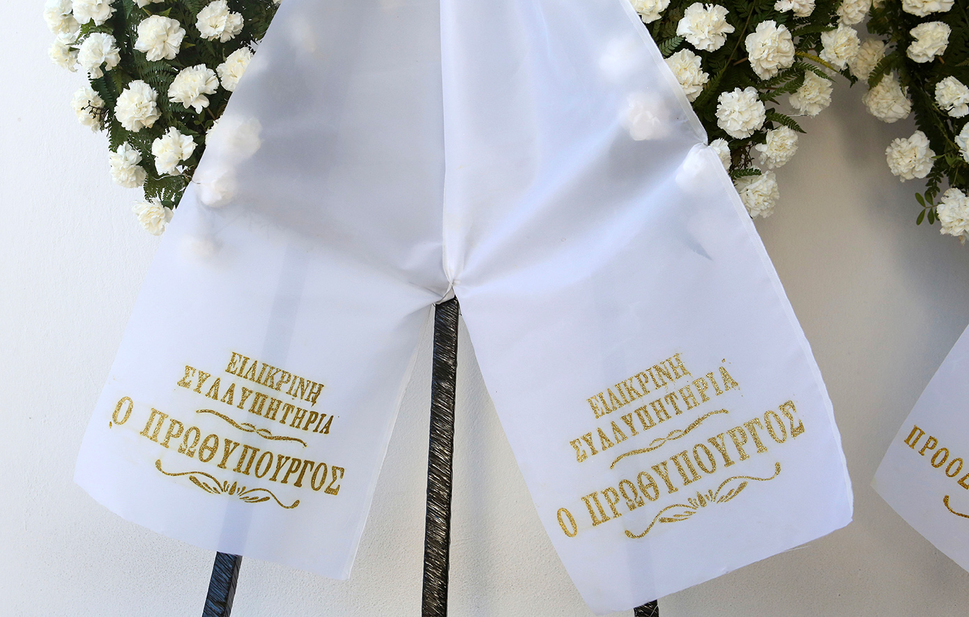 Στεφάνια, μεταξύ άλλων, έχουν στείλει ο πρωθυπουργός, Κυριάκος Μητσοτάκης, ο πρόεδρος του ΣΥΡΙΖΑ, Σωκράτης Φάμελλος, και ο κυβερνητικός εκπρόσωπος, Παύλος Μαρινάκης.
