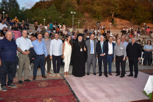 Σήμερα, στην ιστορική τούτη σκυτάλη, προστίθεται ένα έργο που αναδεικνύει τη συνέχεια του πολιτισμού μας· ένα θέατρο που θα δίνει φωνή στο παρελθόν και θα εμπνέει το μέλλον…Μέσα σε αυτό το χαροποιό κλίμα, η τοπική κοινωνία αναγνωρίζει και τιμά δυο εξέχοντες καλλιτέχνες και συνεχιστές αυτής της πλούσιας παραδόσεως, με καταγωγή από τα Τρόπαια: τον κ. Μπάμπη Τσέρτο και τη κ. Νάντια Καραγιάννη, οι οποίοι με την έντιμη και αφοσιωμένη παρουσία τους στο ελληνικό τραγούδι και την σεμνή καλλιτεχνική τους πορεία, υπηρέτησαν το λαϊκό ήθος, τη μουσική μας παράδοση και την ψυχή του Ελληνισμού.