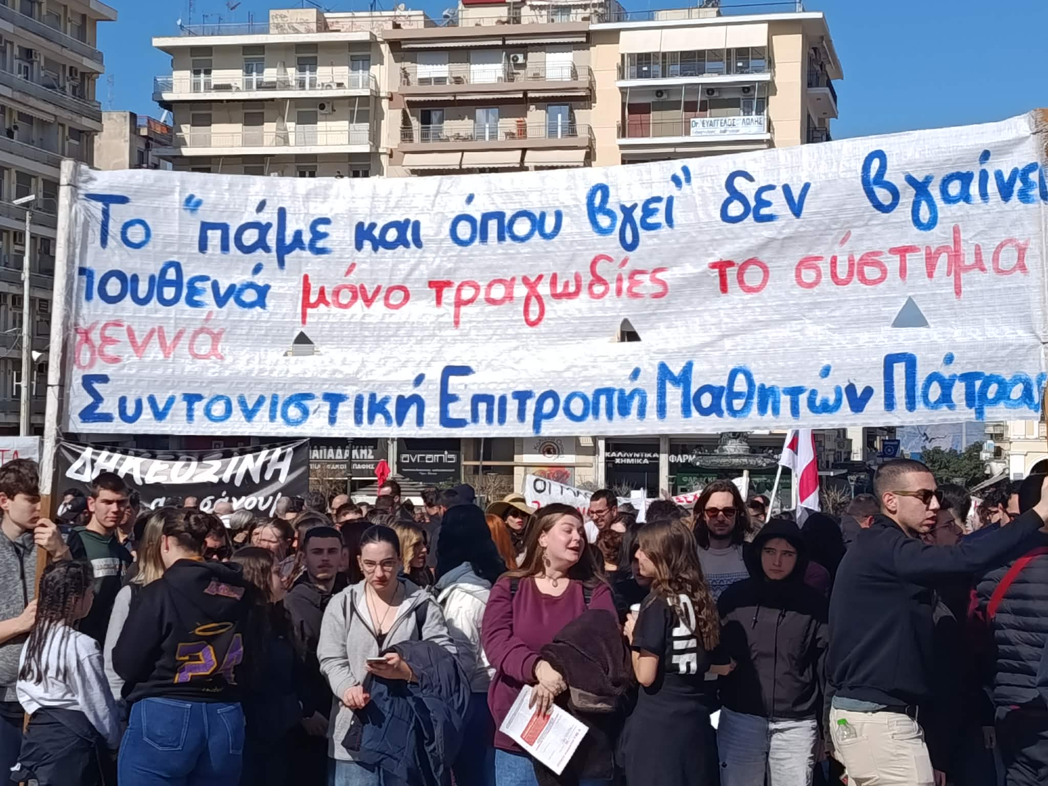 Τραγωδία Τεμπών: Με σύνθημα «Δεν ξεχνάμε – Δεν συγχωρούμε» φοιτητές, εκπαιδευτικοί, συνταξιούχοι στην πλατεία Γεωργίου της Πάτρας