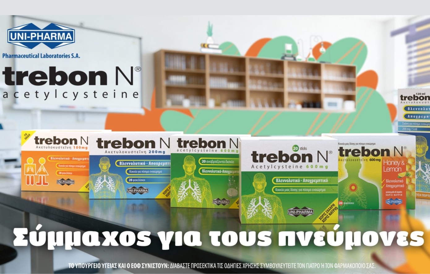 «Ατανσιόν, Ατανσιόν, σιλβουπλέ! Όταν βήχεις και νιώθεις ντεφορμέ, αναπνοή δεν παίρνεις βρε, μία είναι η λύση… Ω, μον ντιέ! Très bon! Trebon! Διαλύεται στο νερό, απλό στη χρήση και αποτελεσματικό. Τρε φανταστίκ, μον σερί! Ρευστοποιεί, σε ηρεμεί, και ο βήχας… οφφ, εξαφανί! Για αναπνοή τρε μανιφίκ… Trebon. Τρε φανταστίκ! Είναι από την UNI-PHARMA». Με αυτό το ευρηματικό και απολαυστικό concept, με μια… «γαλλική» πινελιά, ξεκινά επίσημα η νέα 360° καμπάνια για το Trebon N, το διαχρονικά αξιόπιστο βλεννολυτικό σκεύασμα της UNI-PHARMA.