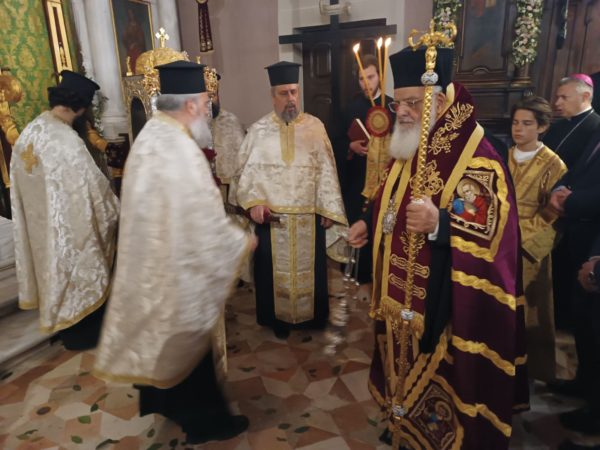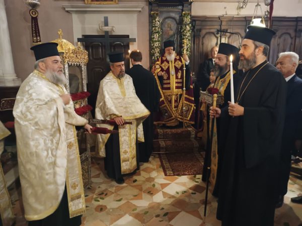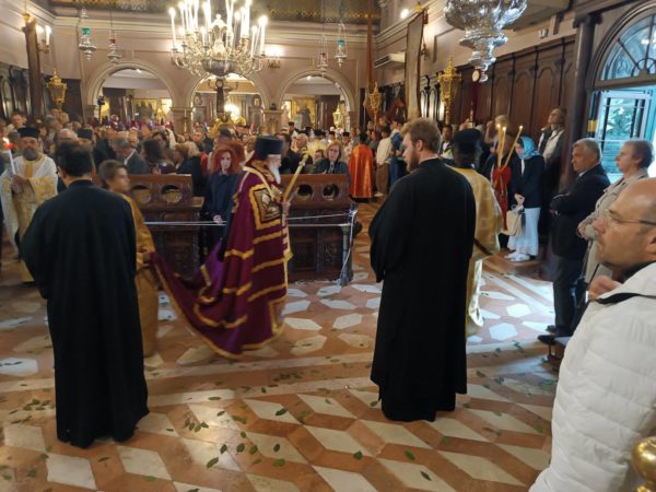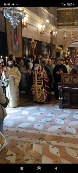 Προηγήθηκε η πανηγυρική ψαλμώδηση του «Χριστός Ανέστη», ενώ στην περιφορά προεξήρχε ο Σεβασμιώτατος Μητροπολίτης Βρεσθένης κ. Θεόκλητος, προσκεκλημένος του Σεβασμιωτάτου Μητροπολίτου Κερκύρας, Παξών και Διαποντίων Νήσων κ. Νεκταρίου.