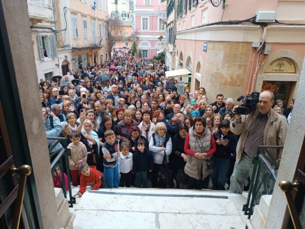 Κατά τα «μπάσματα» παιάνισαν προς τιμήν του Αγίου, κατά την κερκυραϊκή παράδοση, η Παλαιά Φιλαρμονική και η Φιλαρμονική ΜΑΝΤΖΑΡΟΣ, ενώ πλήθη κόσμου συμμετείχαν στην περιφορά τόσο εντός του ναού, όσο και στις θύρες, όπου κατά παράδοσιν βγαίνει το ιερό σκήνωμα και ευλογεί τον λαό, βασταζόμενο από τέσσερις κληρικούς, με την παρουσία και των αρχών του τόπου.