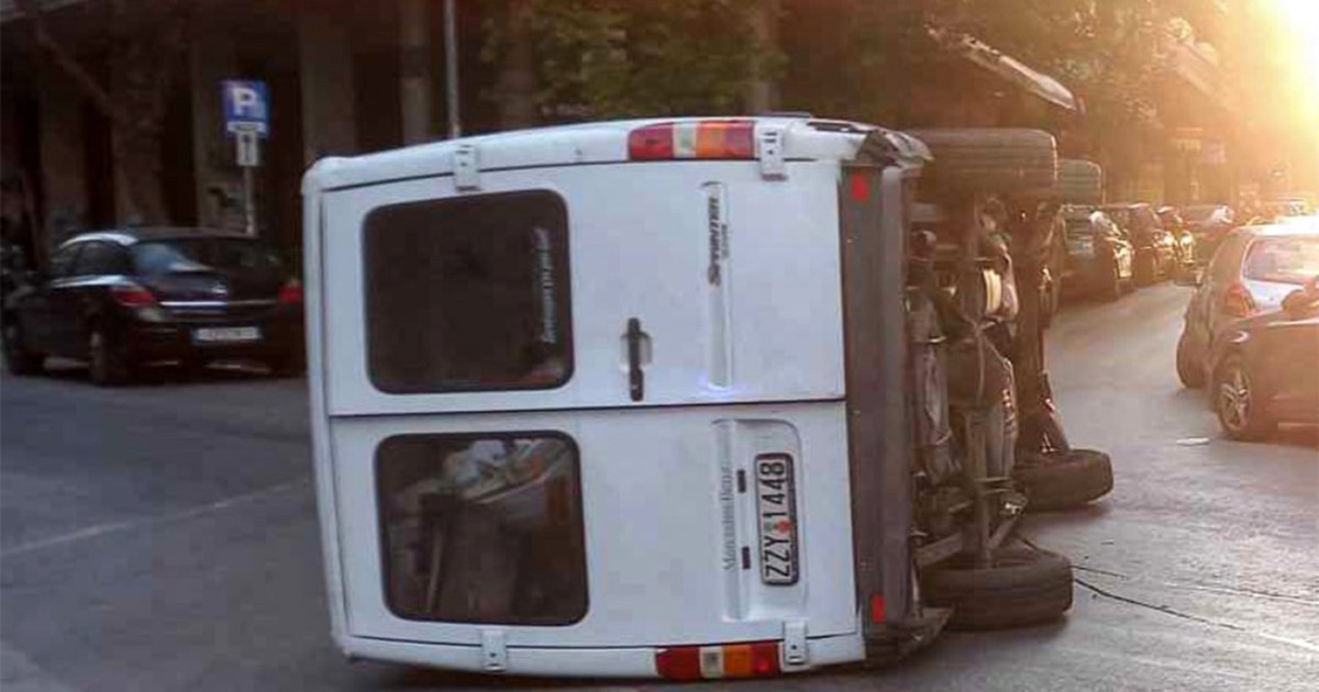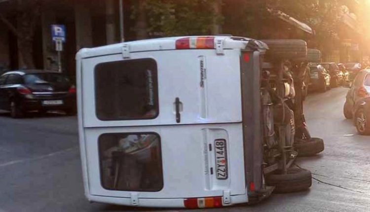 Ευτυχώς δεν υπήρξαν τραυματισμοί, ωστόσο το φορτηγάκι αναποδογύρισε, ενώ ζημιές υπέστη και ένα σταθμευμένο αυτοκίνητο.