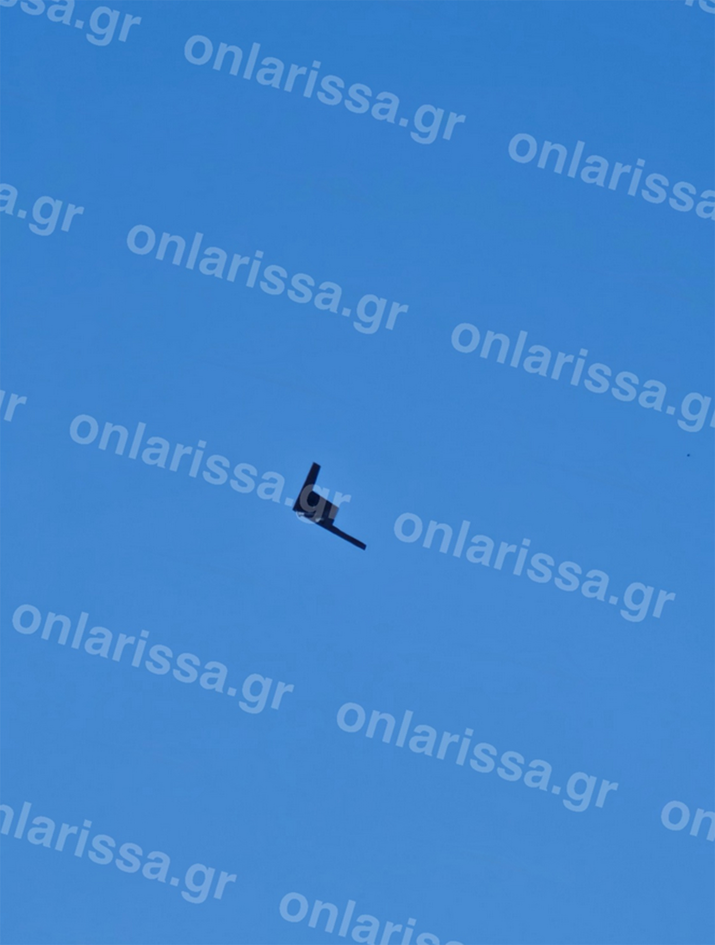 Οι εικόνες που καταγράφηκαν κοντά στην 110 Πτέρυγα Μάχης δείχνουν ένα αεροπλάνο που θυμίζει έντονα το θρυλικό Northrop Grumman B-2 Spirit, ένα από τα πιο εξελιγμένα στρατηγικά βομβαρδιστικά στον κόσμο, σύμφωνα με όσα αναφέρει το onlarissa.gr