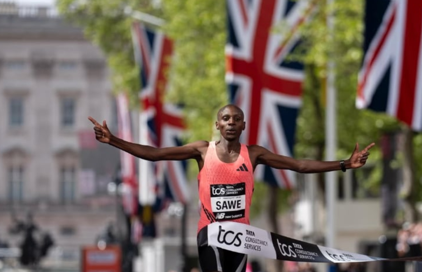 Στον Μαραθώνιο του Λονδίνου, η παράσταση ανήκε ολοκληρωτικά στον Σαμπάστιαν Σάουε, ο οποίος πραγματοποίησε μια από τις πιο εντυπωσιακές εμφανίσεις στην ιστορία του αγωνίσματος, κατακτώντας τη νίκη και σημειώνοντας χρόνο 1:59:30. Ο 31χρονος Κενυάτης έδειξε από νωρίς ότι βρισκόταν σε εξαιρετική κατάσταση, επιβάλλοντας έναν ρυθμό που δεν μπόρεσε να ακολουθήσει κανείς.