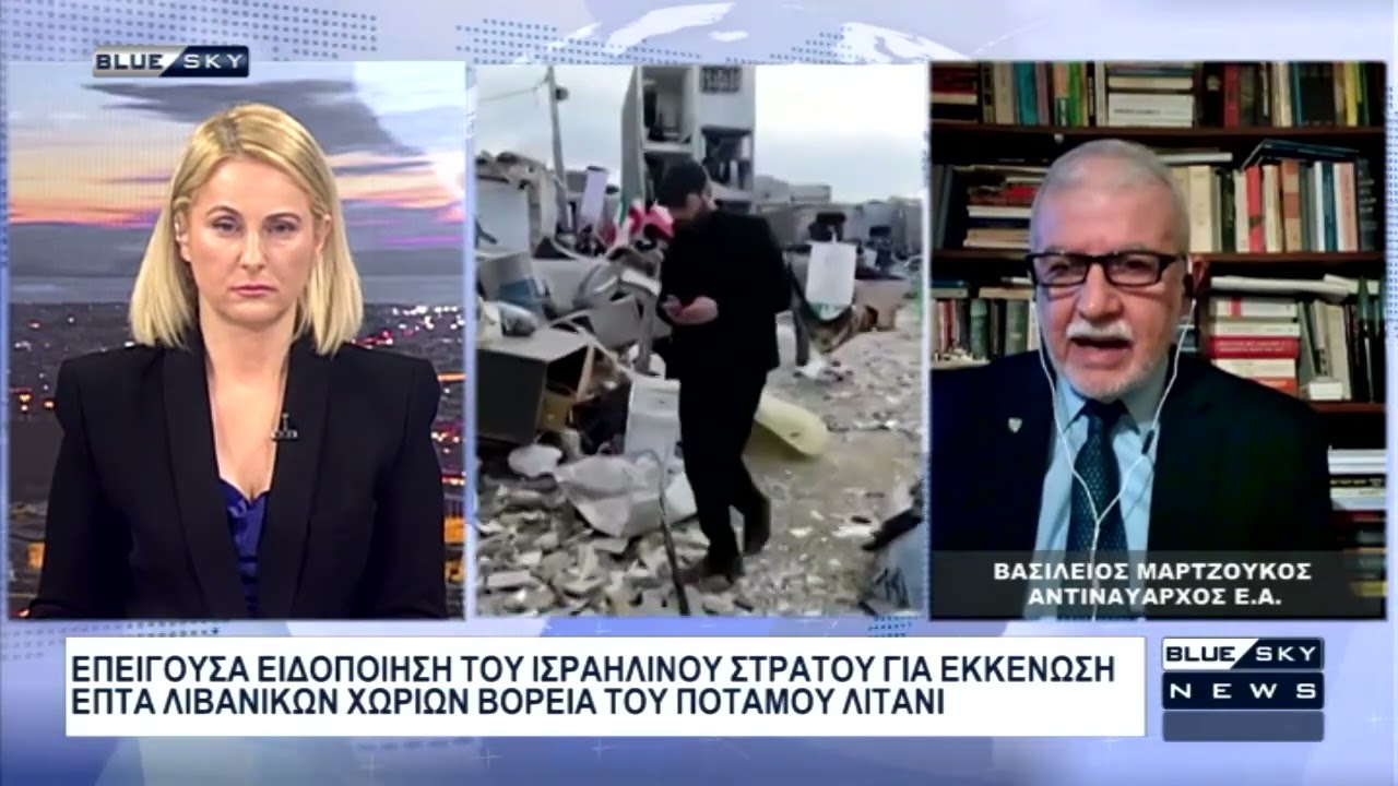 Στο Κεντρικό Δελτίο Ειδήσεων του BLUE SKY (26-04-26) με την Λία Λάππα, ο Βασίλειος Μαρτζούκος Αντιναύαρχος ε.α. και Αντιπρόεδρος στο Ελληνικό Ινστιτούτο Στρατηγικών Μελετών (ΕΛΙΣΜΕ).